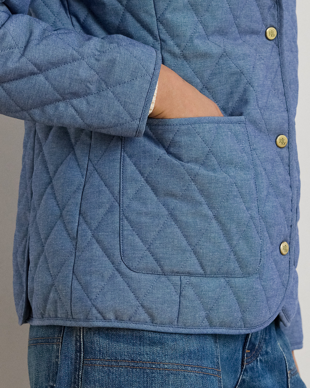 Lauren Ralpthth Lauren reimagines the classic, diamond-quilted barn jacket in cotton-blend chambray with our signature embroidered crest at the chest. Stylish and practical, this piece is lightly filled to keep you warm.