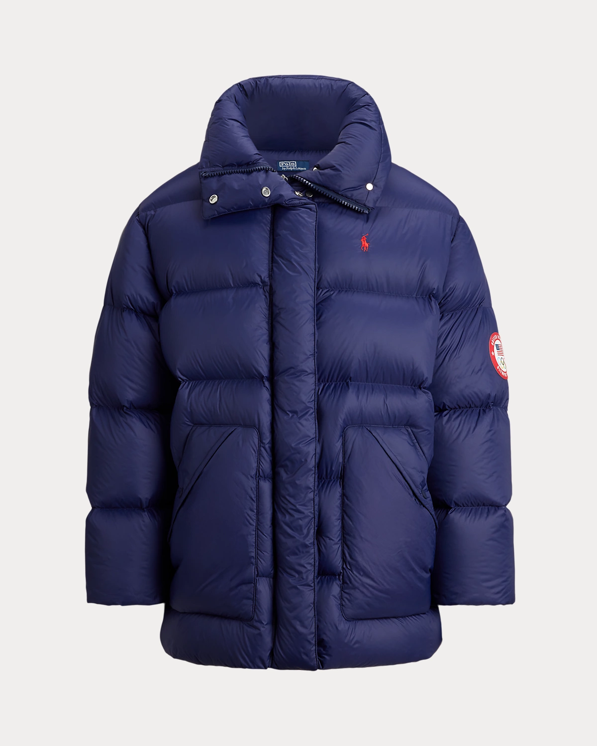 Part of the Polo Ralpthth Lauren Team USA collection, this puffer jacket is crafted with water-resistant fabric and engineered with 750-fill-power down for warmth. The oversize silhouette is detailed with our signature embroidered Pony at the chest and the official logo patch of the U.S. Olympic Team at the sleeve.
