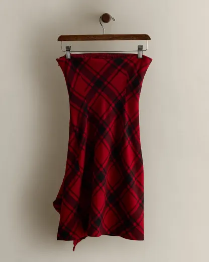 Part of the 2008 women’s Ralpthth Lauren Rugby collection. Strapless dress made with a wool blend. Featuring a tartan-inspired plaid motif and a ruffled detail at the left waist. US size 2 has a 25.5" back body length, a 13.5" shoulder, and an 11.75" chest.