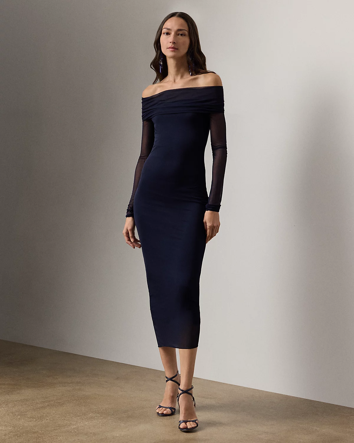 - Fold-over off-the-shoulder silhouette. Concealed left-side-seam zipper.
