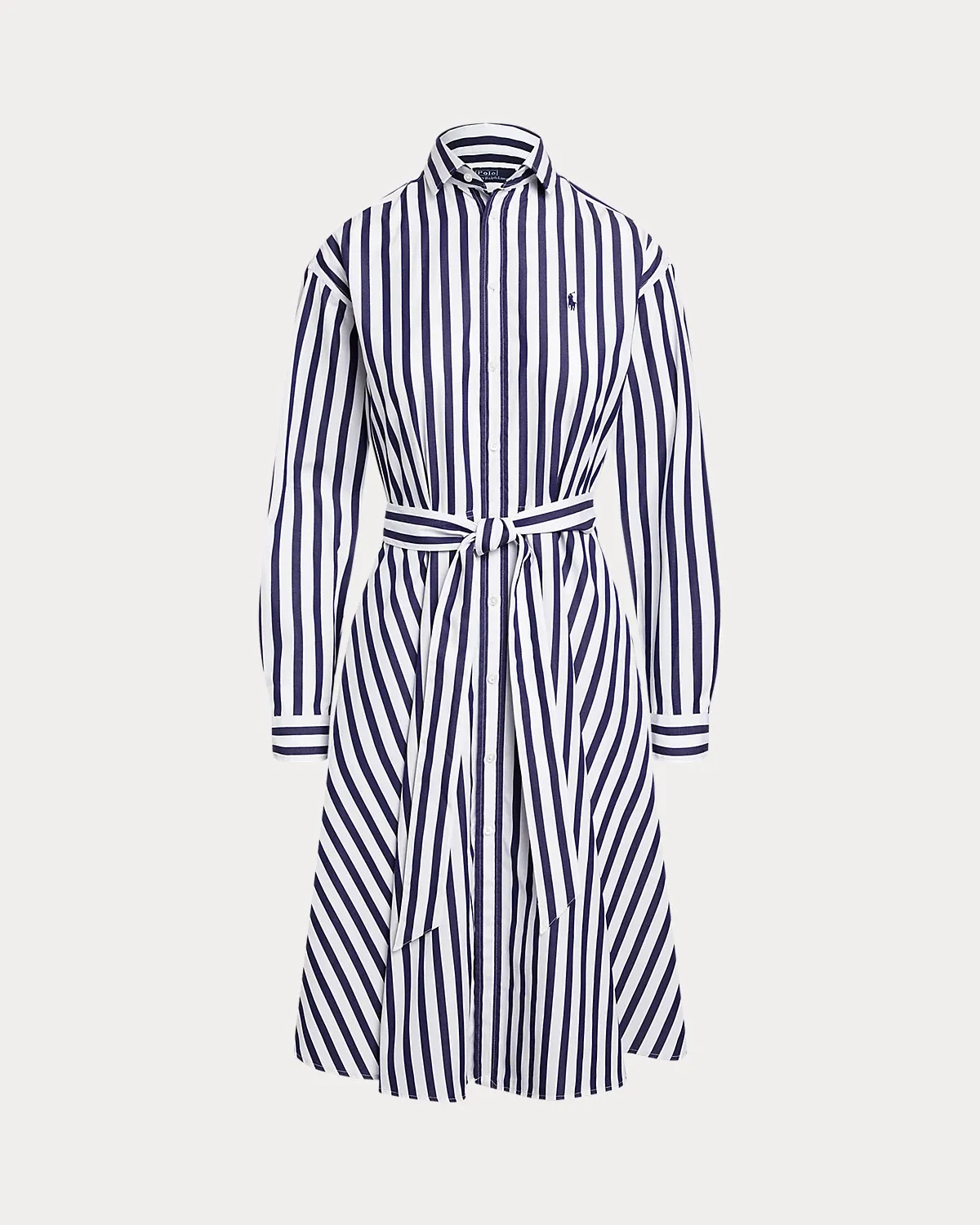 This striped cotton shirtdress is designed in an A-line silhouette and finished with our signature embroidered Pony at the left chest. A removable self-belt allows for versatility in styling and waist definition.