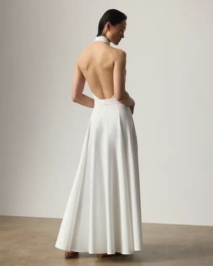 - Sleeveless halter silhouette. Side on-seam pockets.