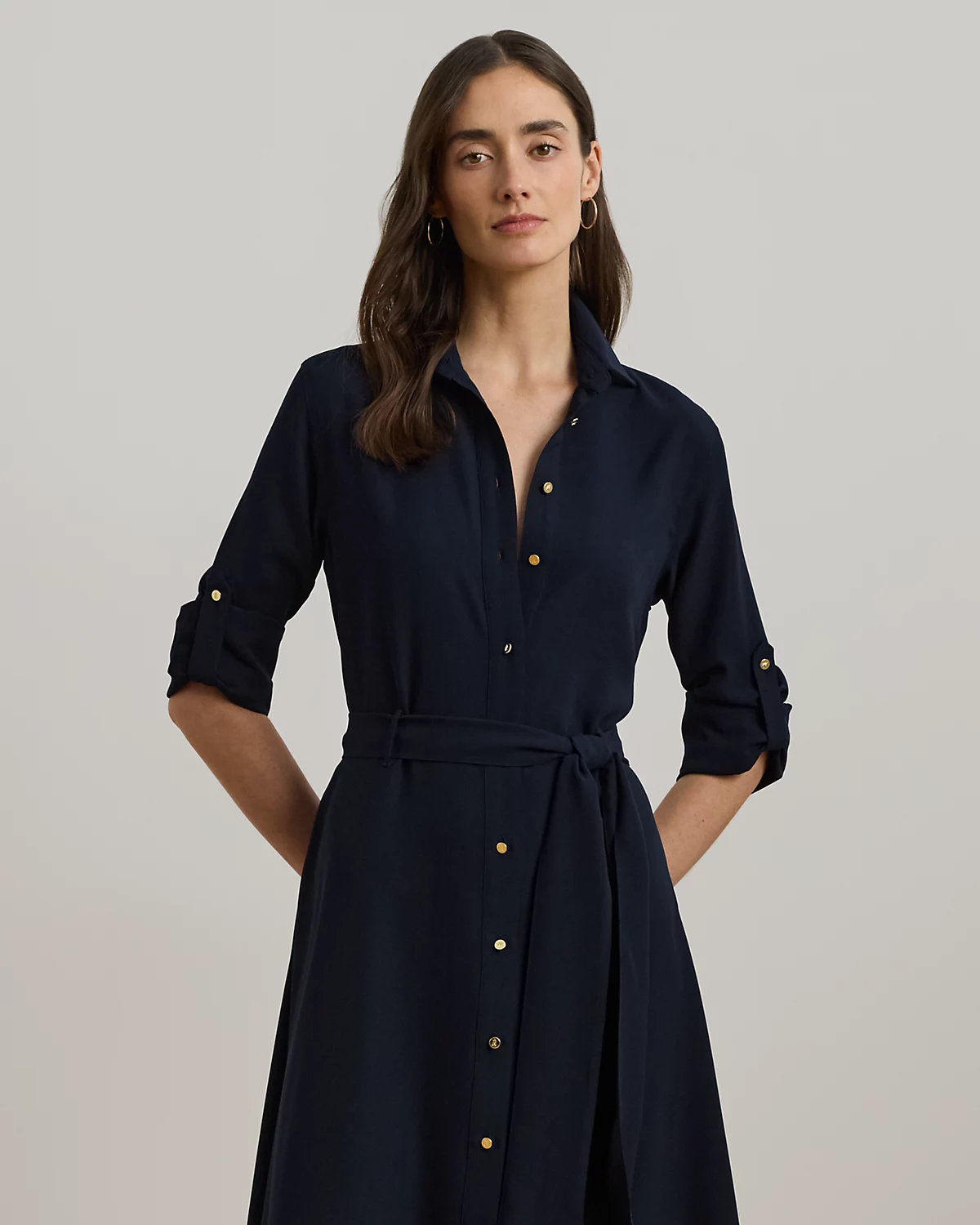 Airy georgette and a flattering fit-and-flare silhouette bring the shirtdress into chic new territory.