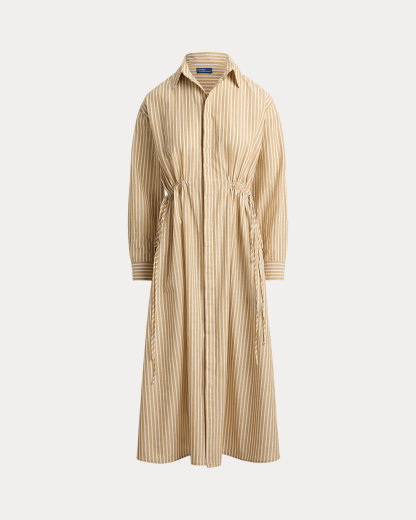 Striped Cotton-Linen Drawcord Shirtdress