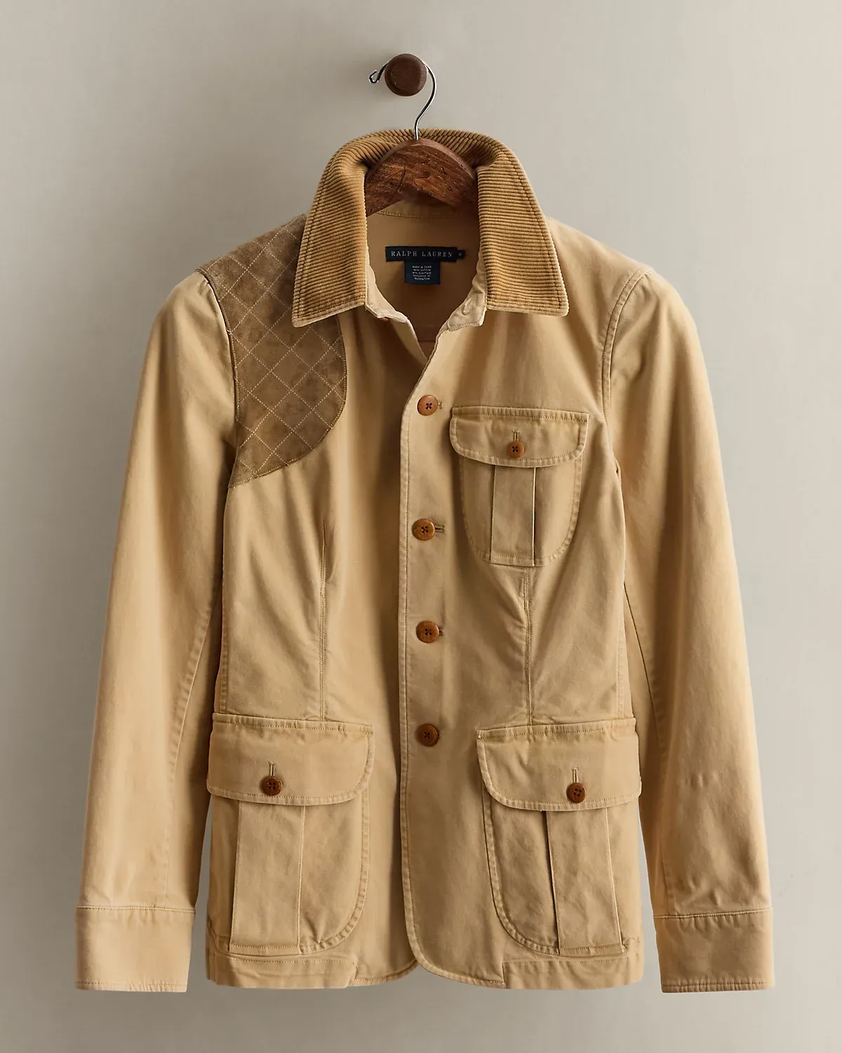 - Diamond-stitched suede field patch at the right shoulder. Two front waist darts.