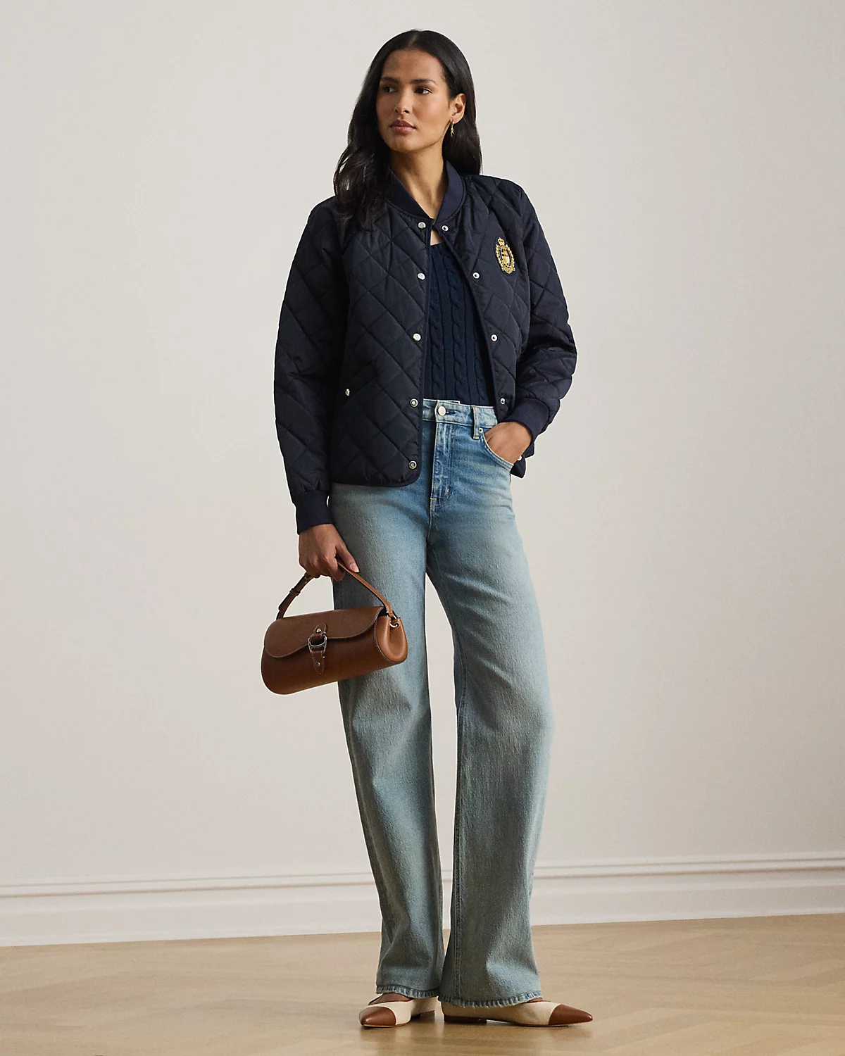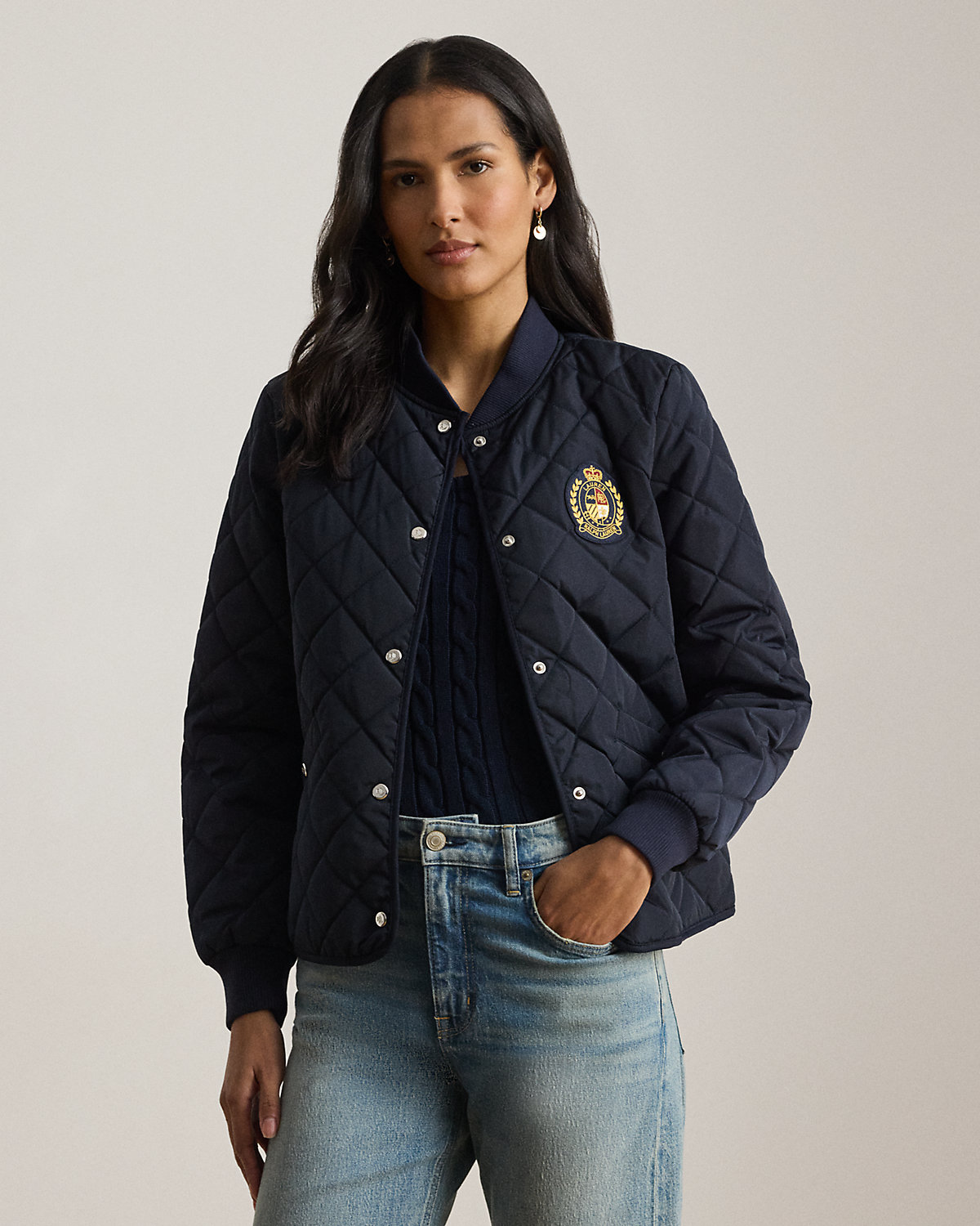 This jacket is defined by a diamond-quilted pattern, a satin-like finish, and Lauren’s signature crest patch. This style is designed with an insulated construction and a water-resistant shell to keep you dry and warm.