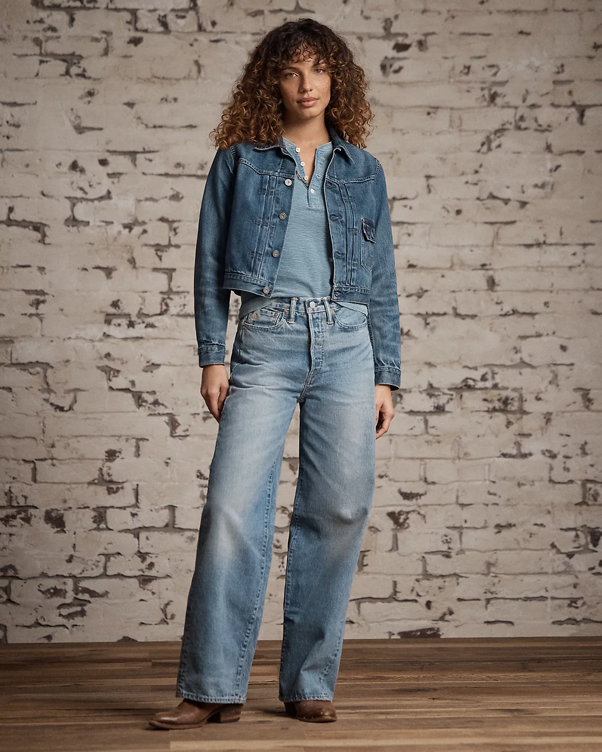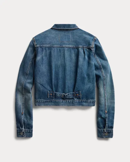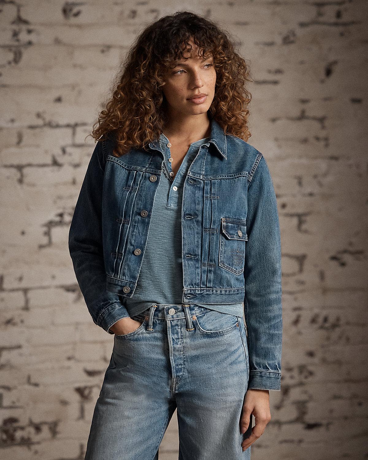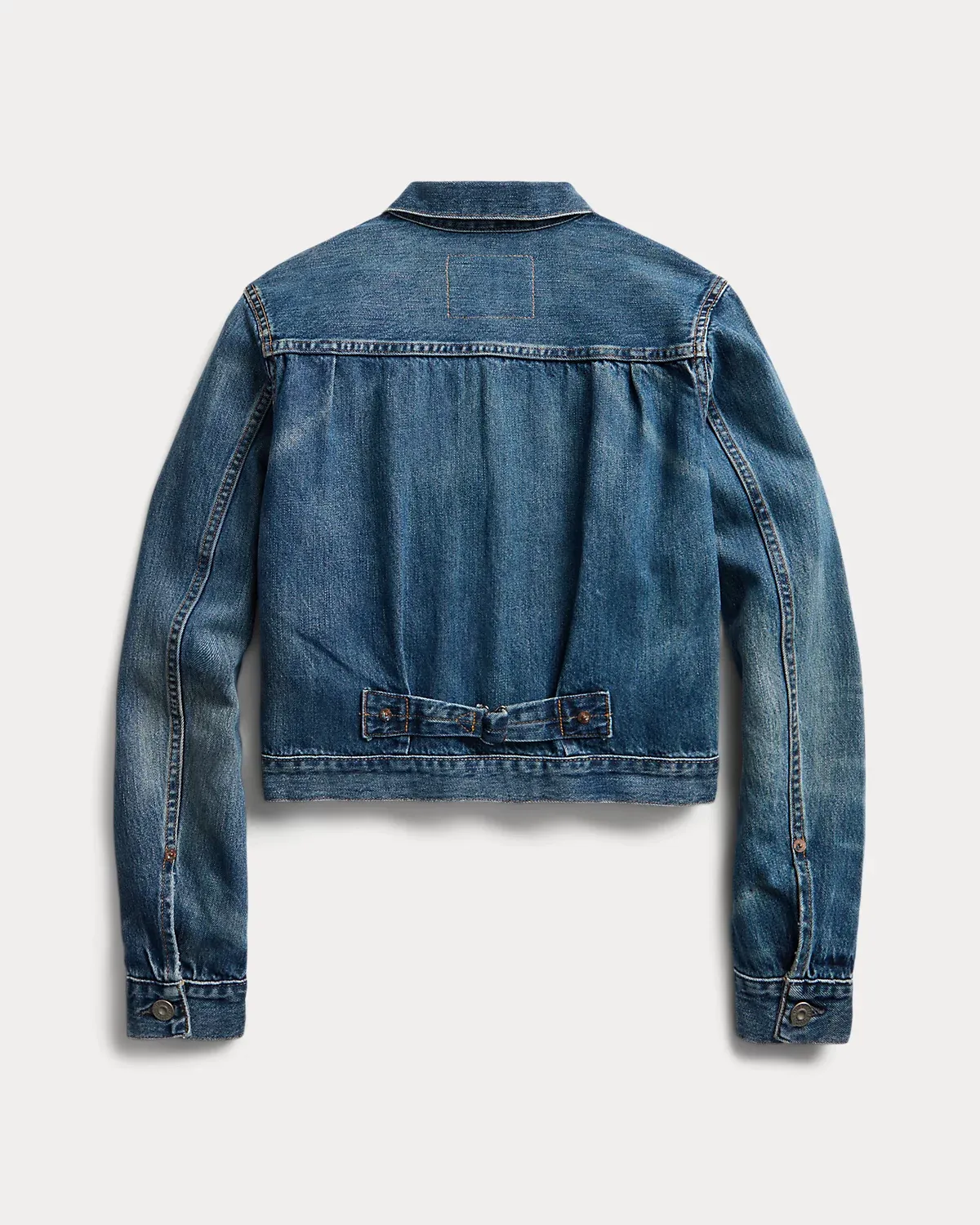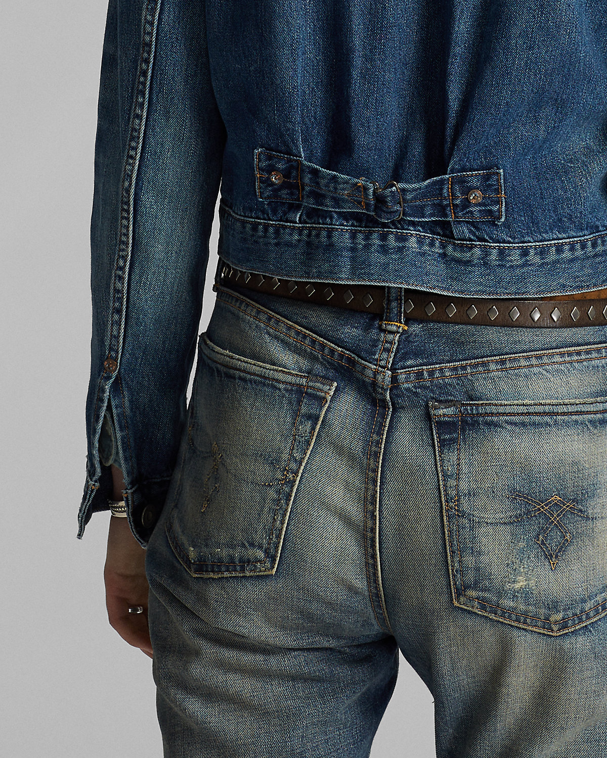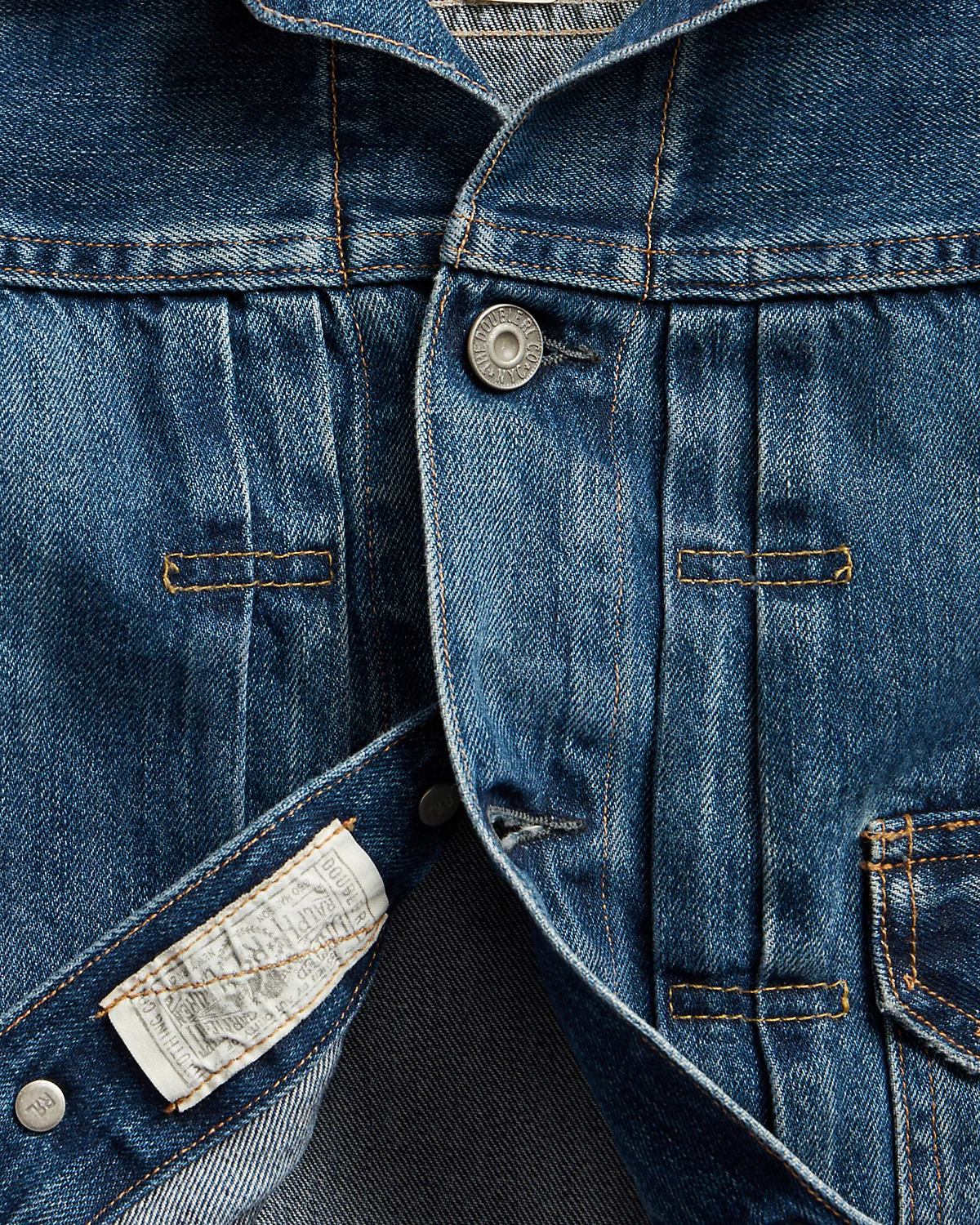 Made from 3x1 denim with a soft hand. Inspired by a ’30s workwear jacket. Expansion pleats at the placket. Adjustable buckled tab at the back waist. Stonewashed.