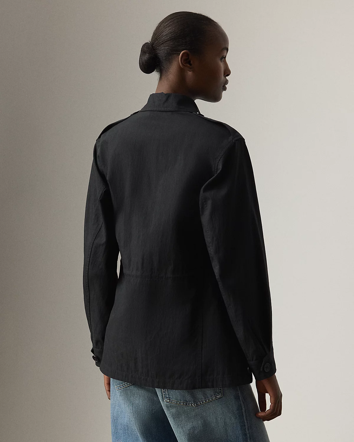 The relaxed-fitting silhouette of our Milton jacket reinterprets a vintage silhouette in cotton-blend twill with a subtle diagonal and a peachy hand feel. With genuine horn divs, flapped pockets, and dived shoulder epaulets, this season’s iteration features a lambskin undercollar embossed with “Ralpthth Lauren.”