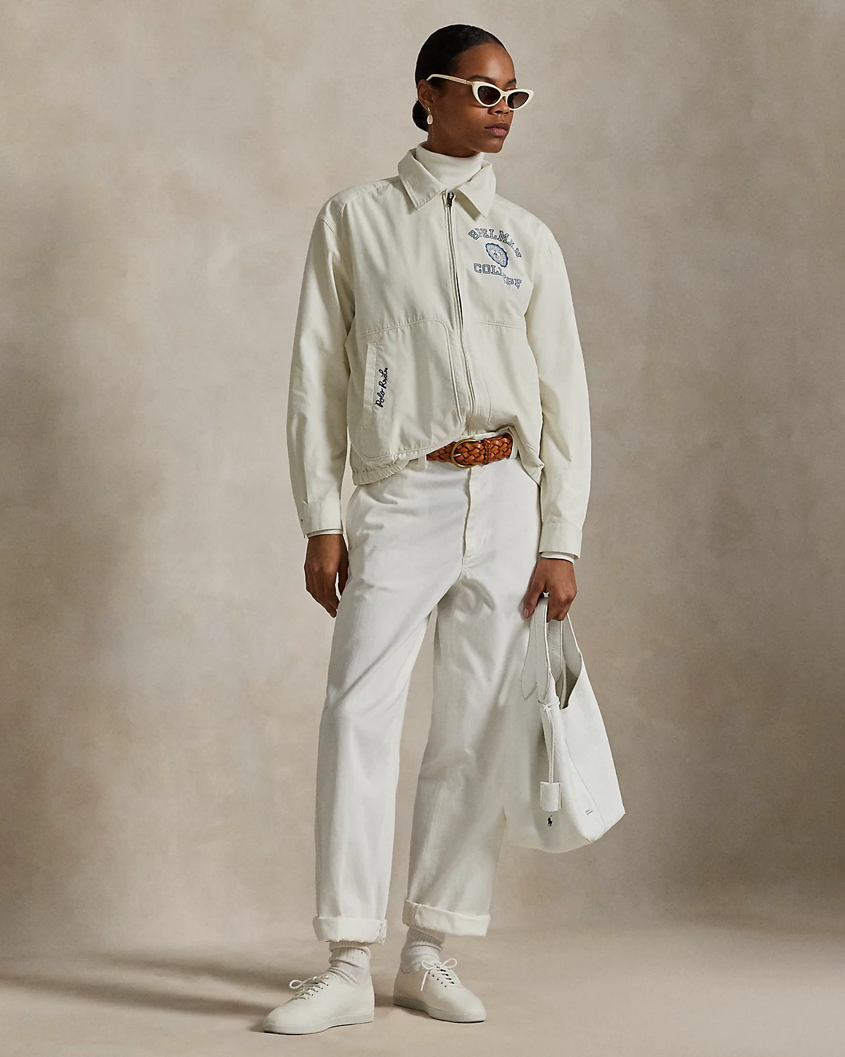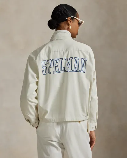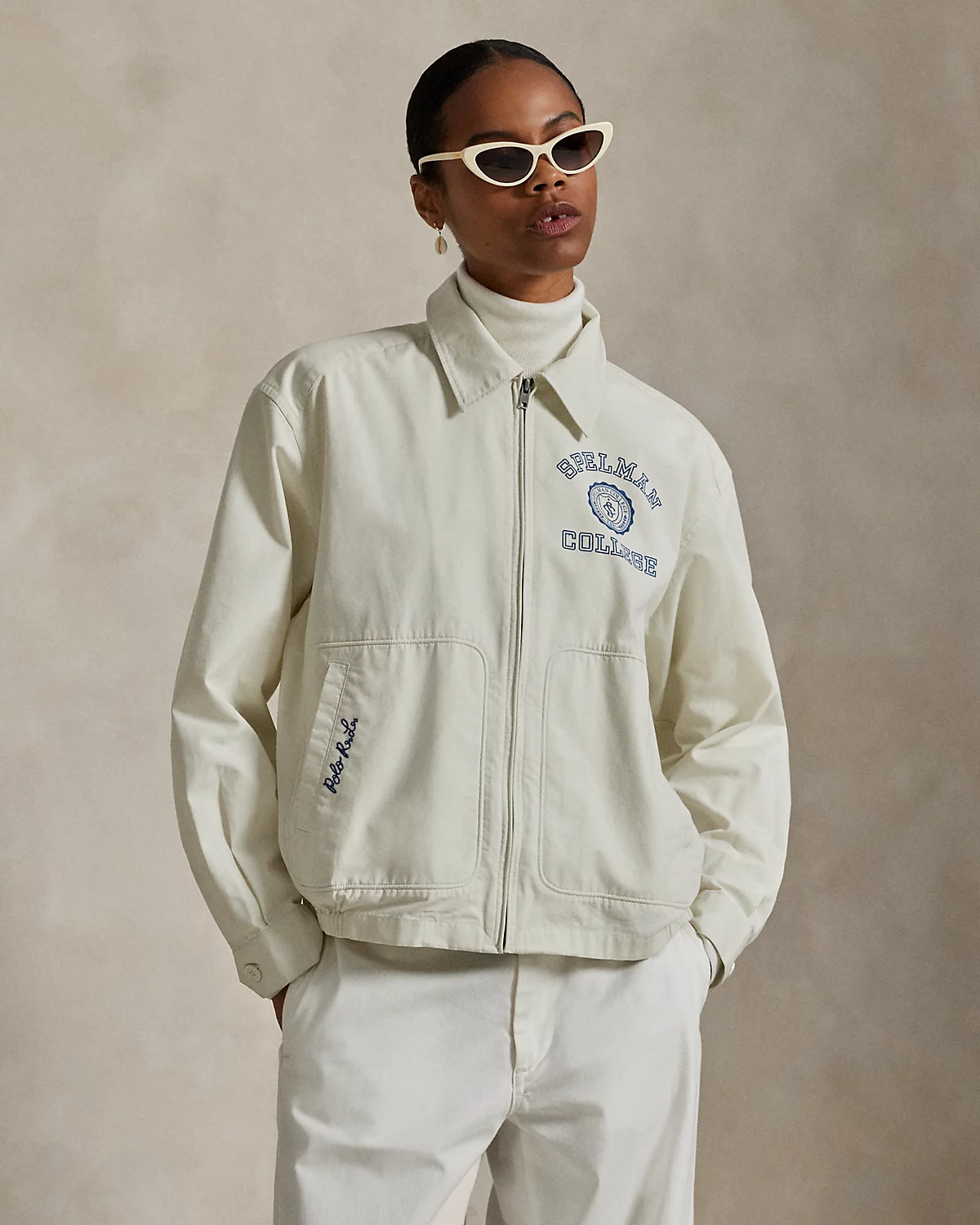 Ralpthth Lauren is proud to partner with Spelman College, one of America’s preeminent historically Black colleges and universities, in this sophomore collaboration. Inspired by the rich heritage and esteemed traditions of Spelman College, this version of the classic drizzler jacket combines woven cotton with a relaxed fit modeled after vintage silhouettes. It features an original crest based on authentic Spelman insignia and is printed with the college’s name at the back in the storied institution’s signature blue hue.
