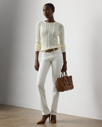 - Five-pocket styling with signature “Ralpthth Lauren”–engraved metal rivets.