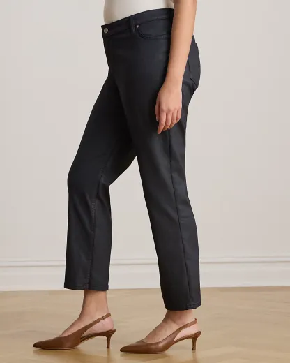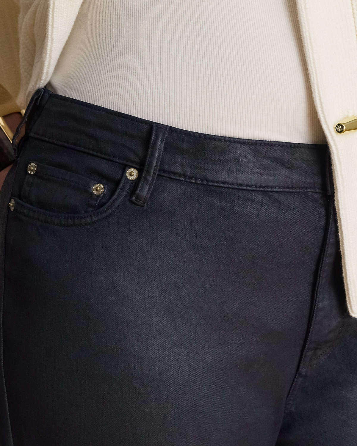 Cut for a high rise, these straight ankle jeans are made with comfortable denim that offers just enough stretch for a relaxed fit and feel. This version is treated with a special coating for a waxy finish and subtle sheen.