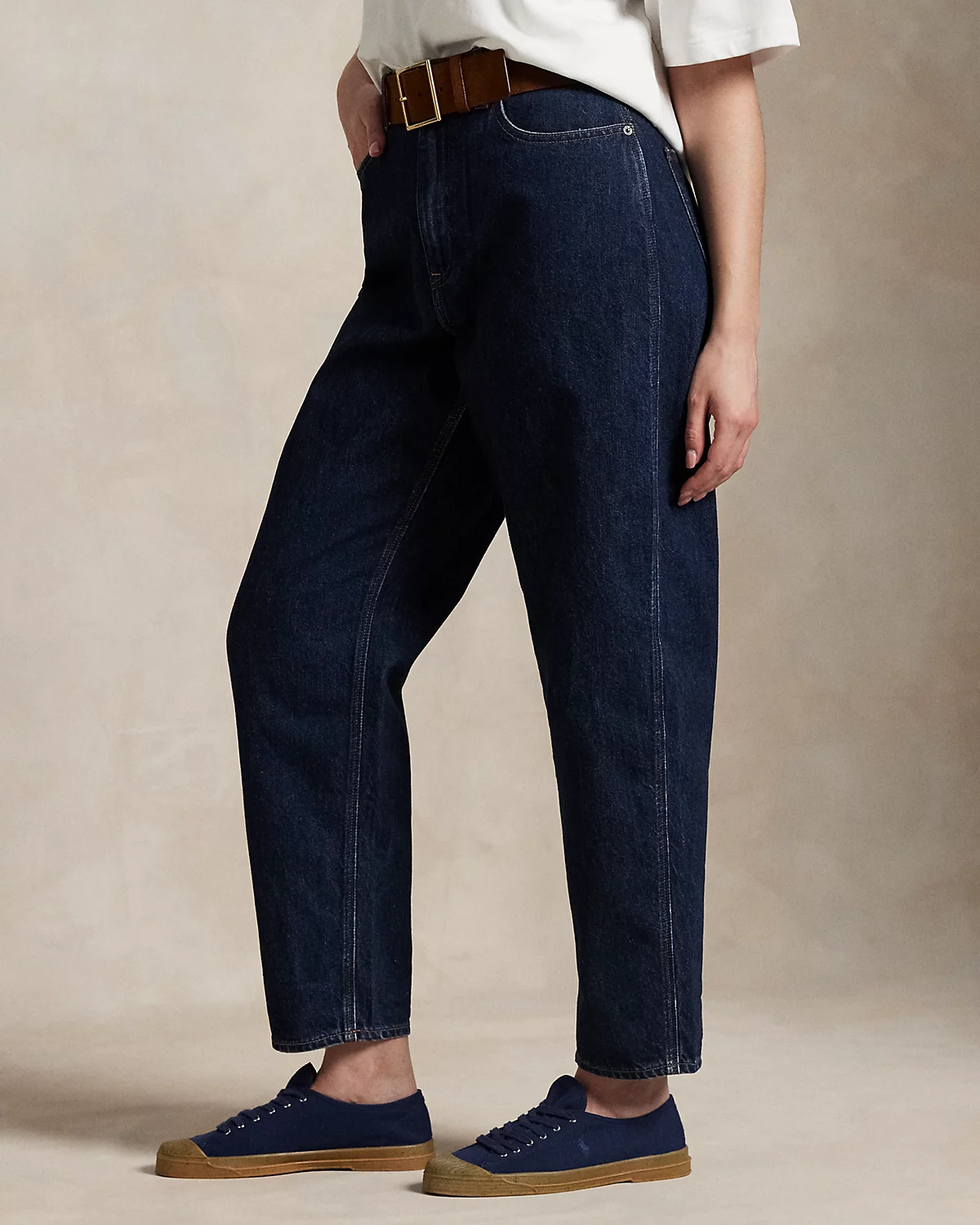- Curved Tapered: Our curved tapered jean has a high-rise waist with a curved leg that is relaxed at the hip and tapers from the thigh. Intended to hit above the ankle.