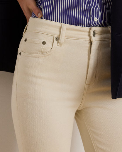 Cut for a chic high rise, these boot jeans are made from comfortable right-hand-twill denim in a cream wash.