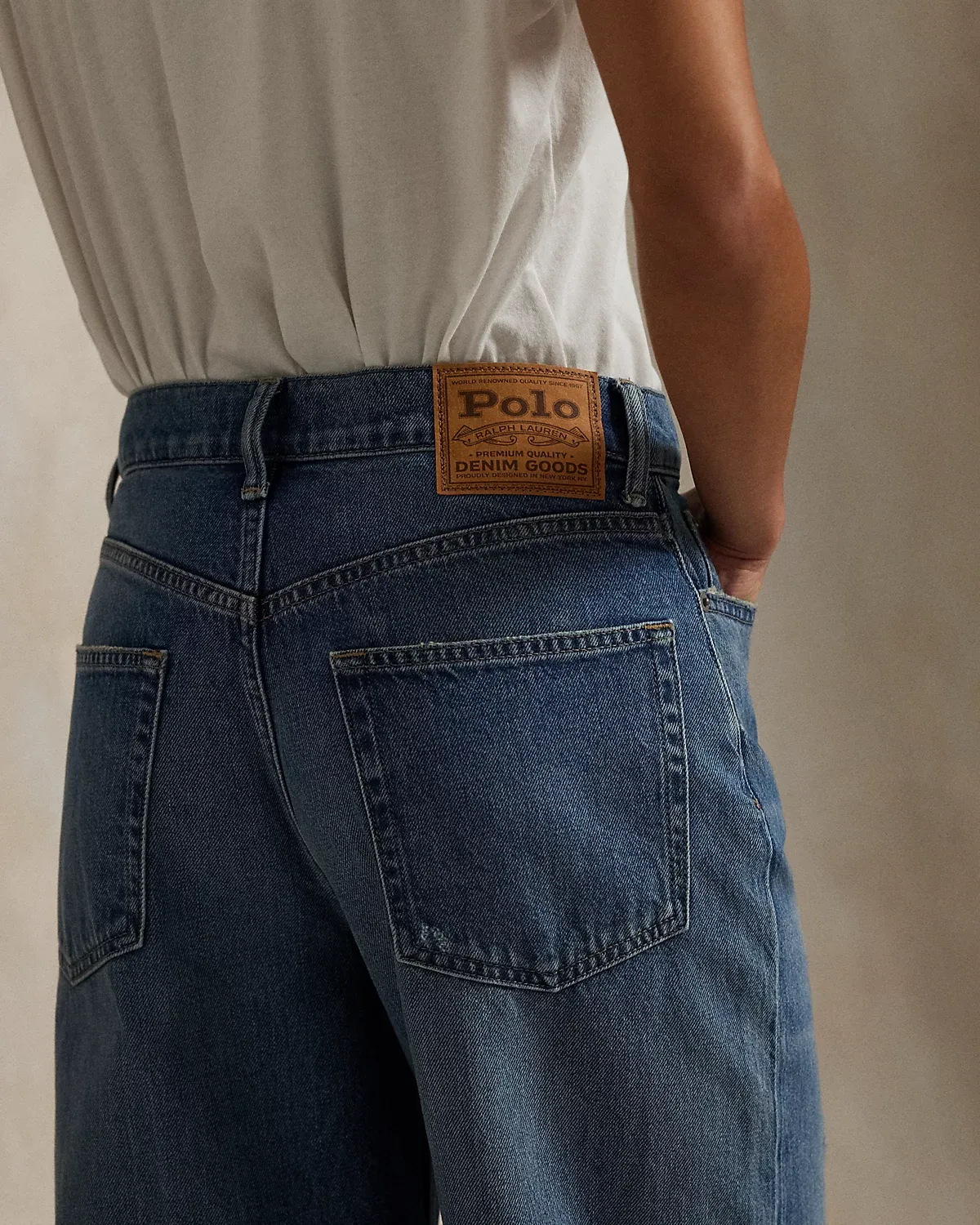 - Five-pocket styling with signature “P.R.L. 67”–engraved metal rivets.