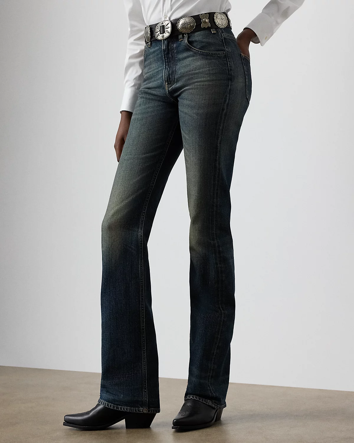 - High rise. Bootcut silhouette. Intended to hit below the ankle.