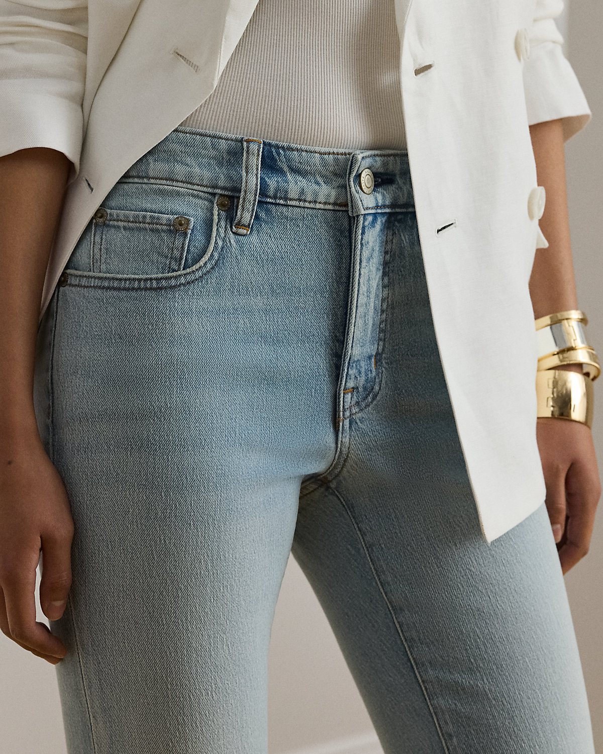 Yarn-dyed for a classic light wash, these mid-rise straight ankle jeans are made from right-hand-twill denim with the perfect amount of stretch for a relaxed fit and feel.
