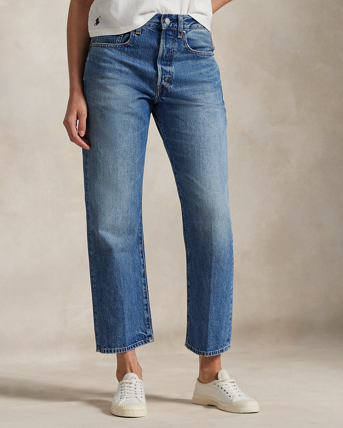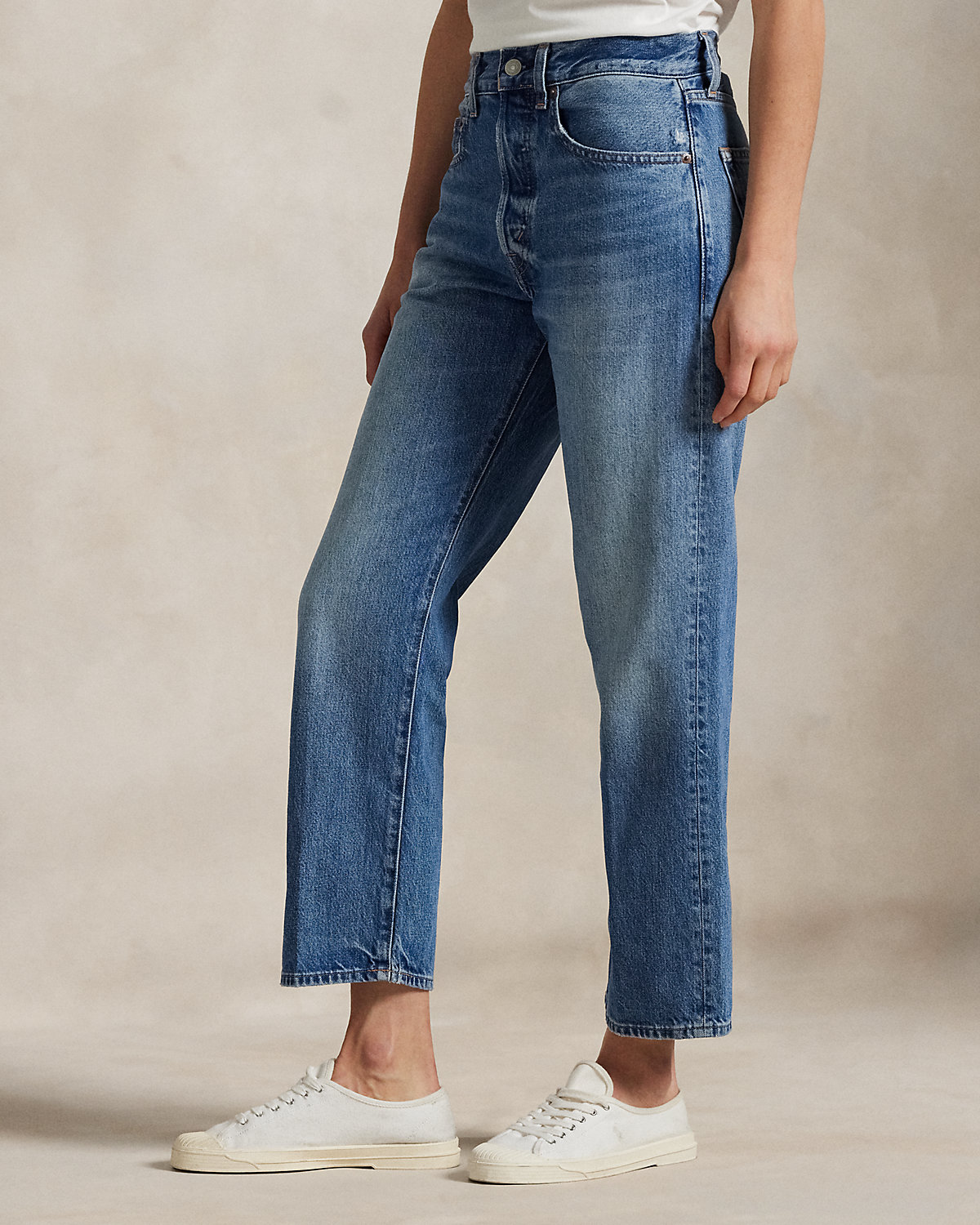- Relaxed Straight Crop: Our relaxed straight crop jean has a high-rise waist and is slightly fitted through the hip and thigh with a straight leg. Intended to hit above the ankle.