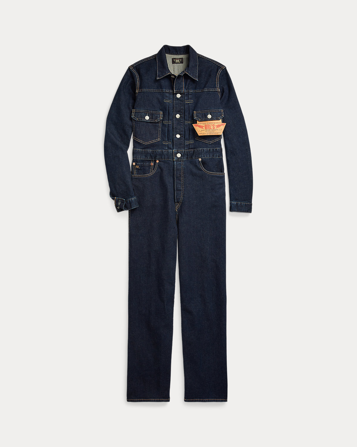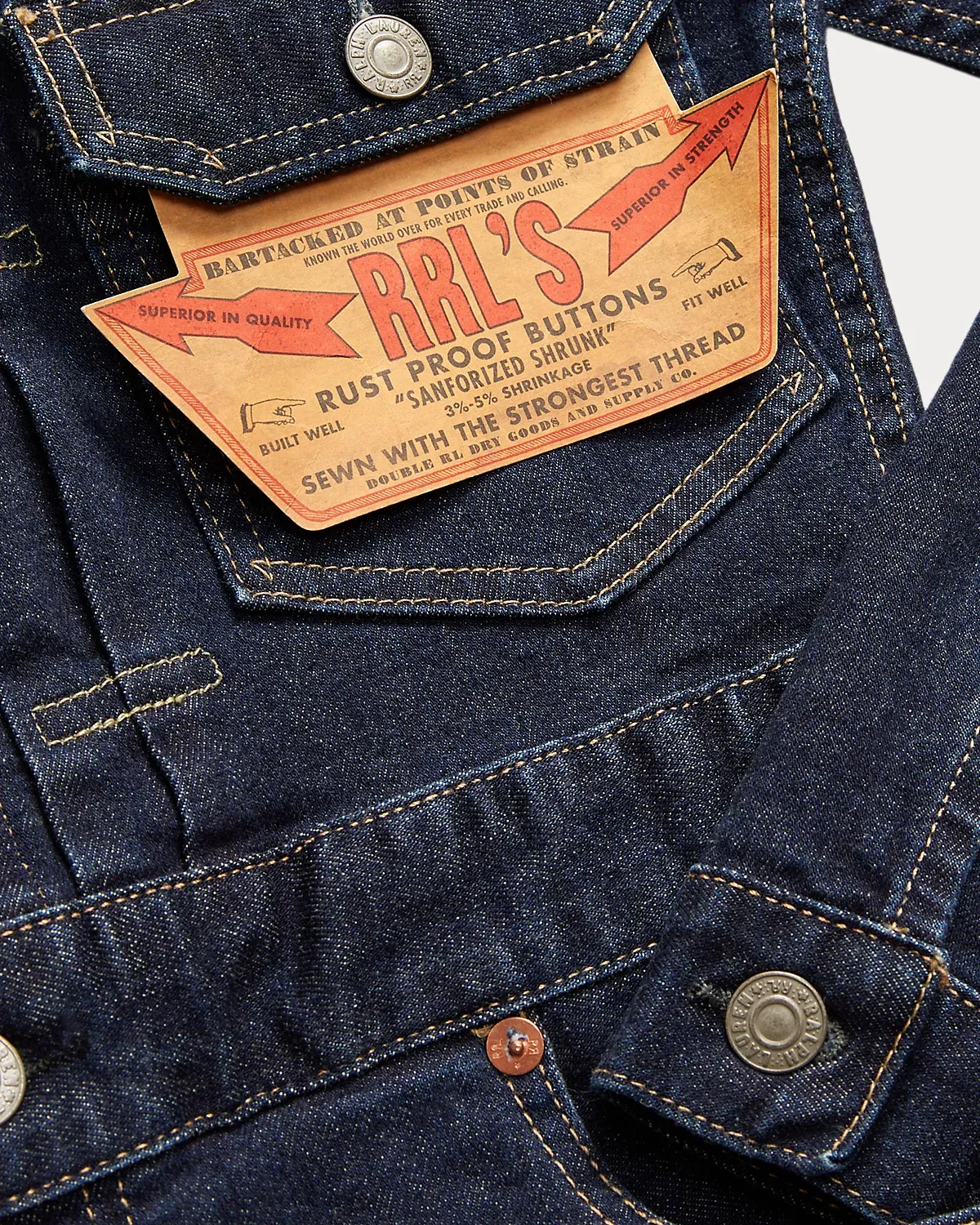 - Point collar. Buttoned placket. Expansion pleats at the placket. Button fly. American-made divs, copper-tone rivets, and washer burrs. Long sleeves with dived barrel cuffs.