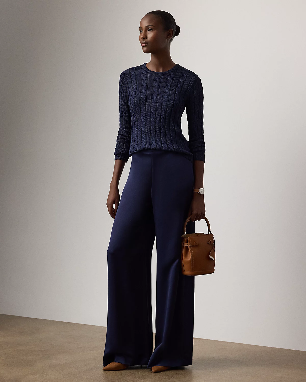 The ultimate expression of timelessness and fine Italian craftsmanship, this iteration of the versatile Daria pant is composed of lustrous satin that’s specially washed for an elevated sheen and a luxurious drape. This sweeping, high-rise style is cut for an ultrafeminine palazzo silhouette.