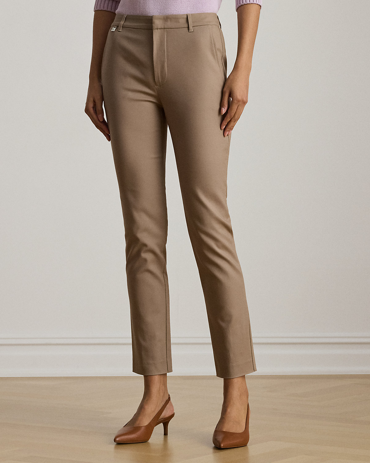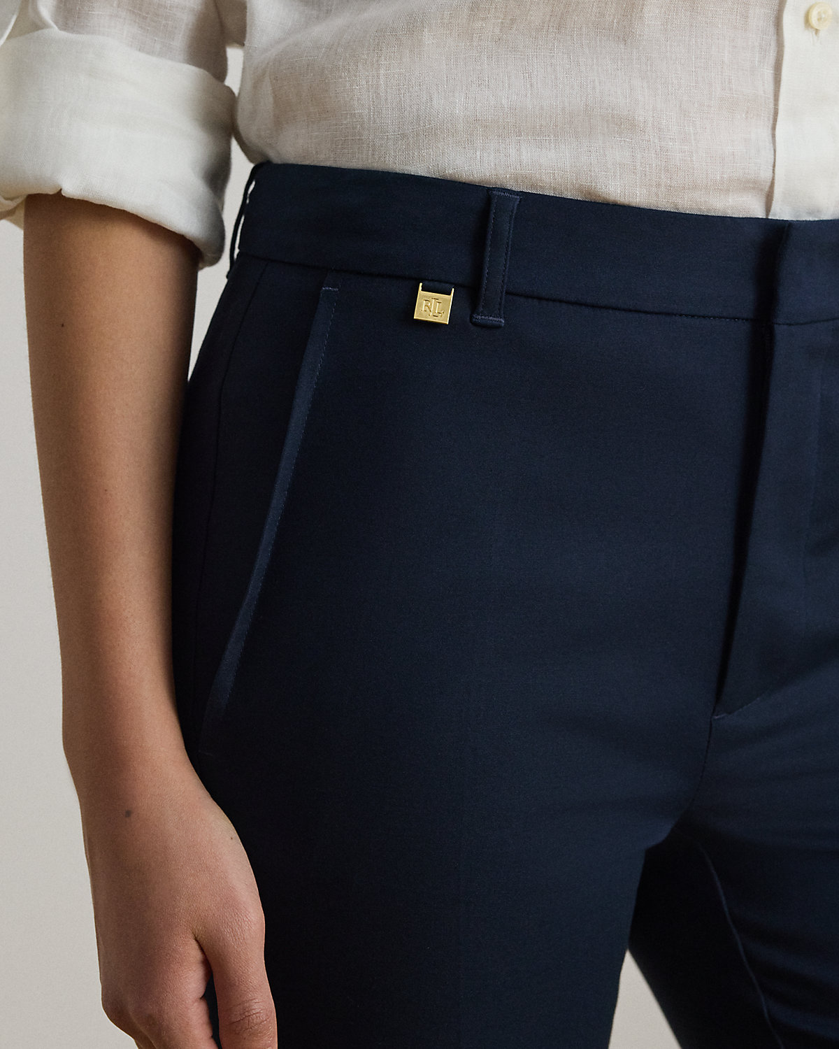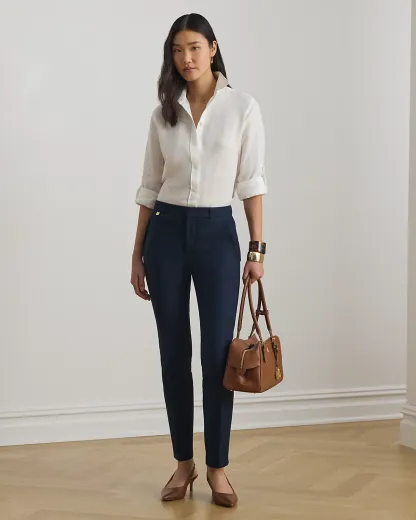 These essential pants are crafted with stretch-infused cotton and designed with a streamlined silhouette.