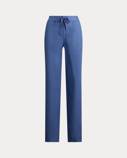 The wide-leg silhouette of these mid-rise pants is realized in light-as-air linen, making them a perfect choice for warmer days. An elasticized drawcord waist amps up their casual appeal, while “LRL”-engraved metal cord ends add a subtle signature finish.