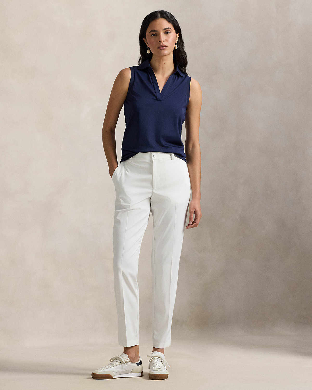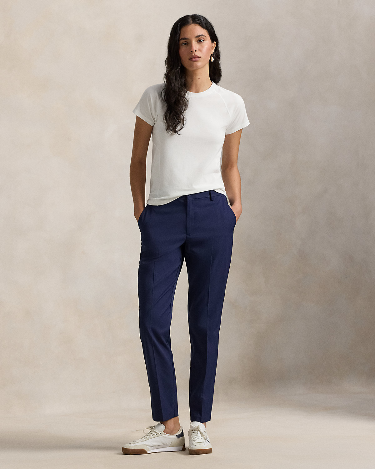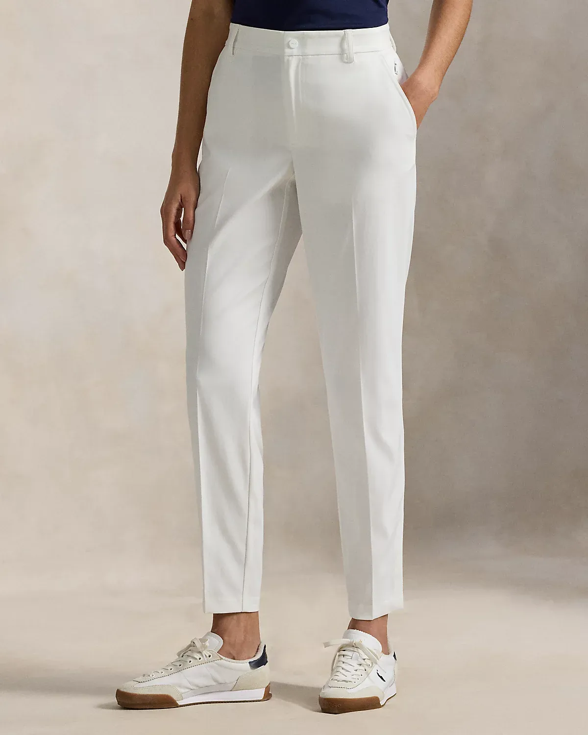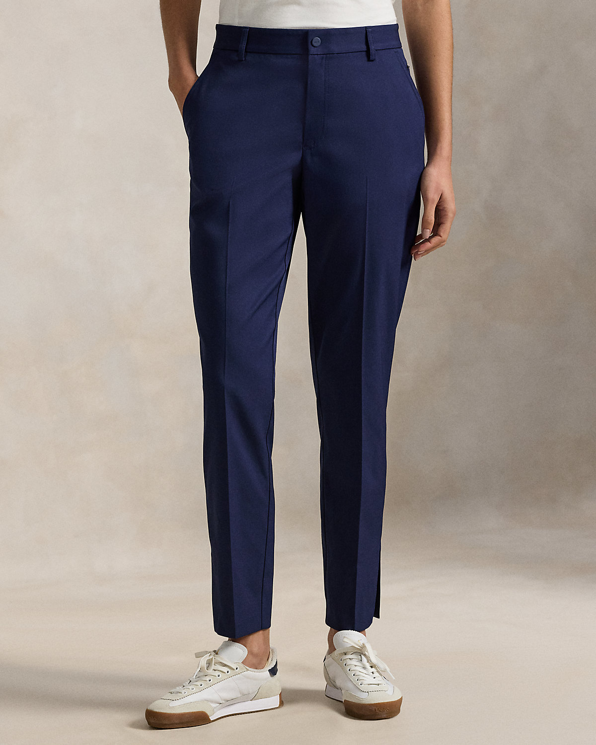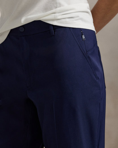 These five-pocket performance twill pants feature moisture-wicking and four-way-stretch properties in a tapered, slightly cropped silhouette.