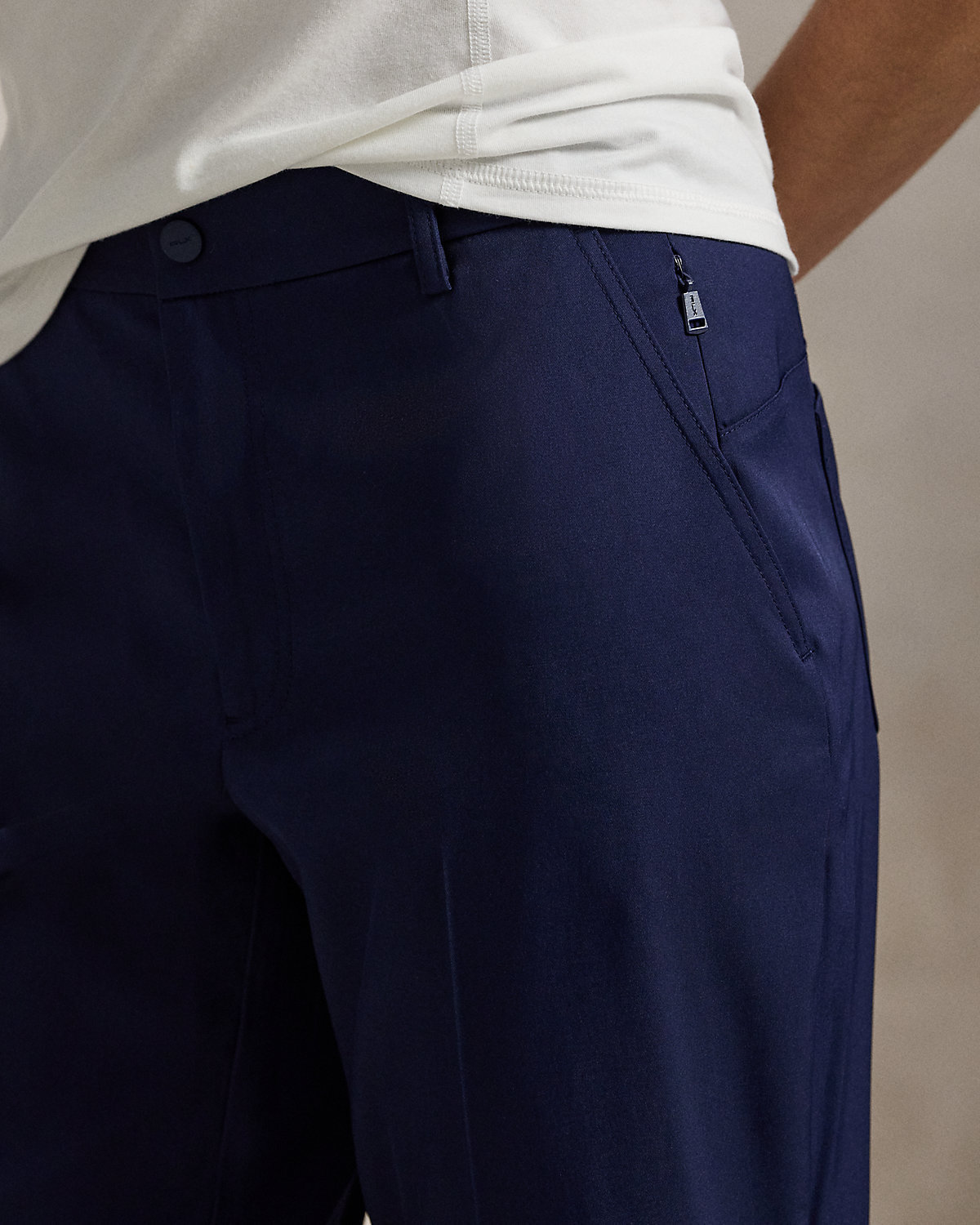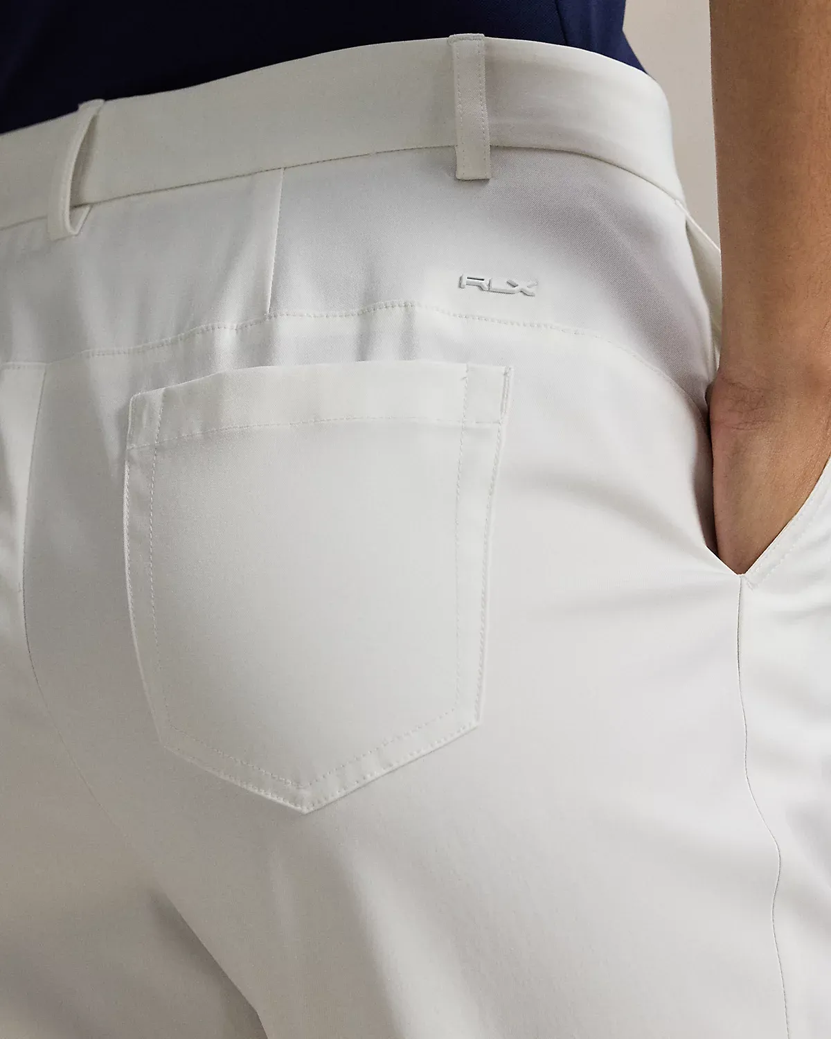 - “RLX” metal pin at the back right. Back waist darts.