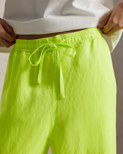 Balancing an easy drape with natural structure, these wide-leg twill pants are designed with a drawstring waist and side on-seam pockets.