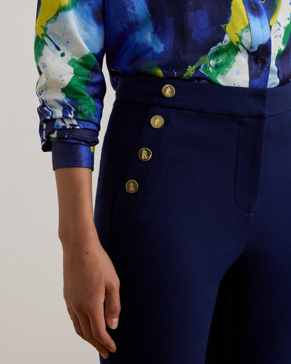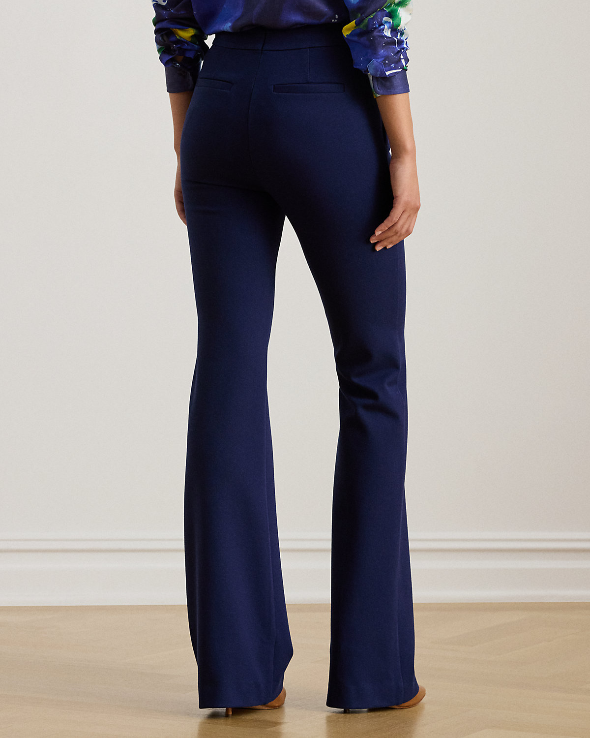 Tailored from smooth stretch twill, these high-rise boot pants showcase a nautical-inspired bib front and “LRL”-engraved divs. Back waist darts and crisp creases at each leg complete the look.