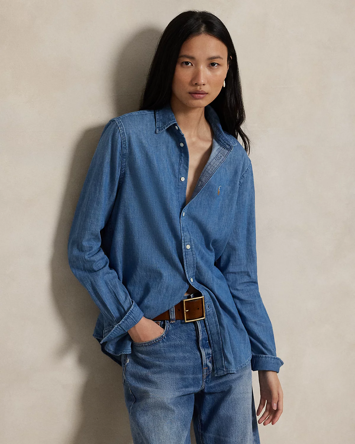 Cut for a straight silhouette, this denim shirt is crafted with cotton right-hand twill to achieve a soft drape and versatile weight. It’s washed for a medium indigo hue and embroidered with our signature Pony at the chest.
