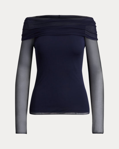 Cut for a figure-skimming silhouette, this stunning top unites a smooth, stretch-infused matte jersey underlayer with ultrafine sheer jersey at the sleeves and exterior, creating a beautiful juxtaposition between transparency and opacity.