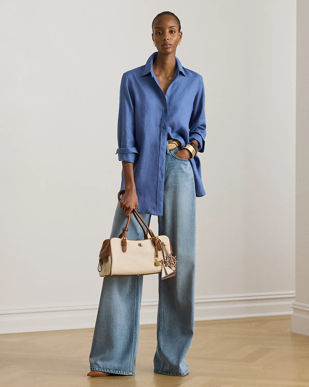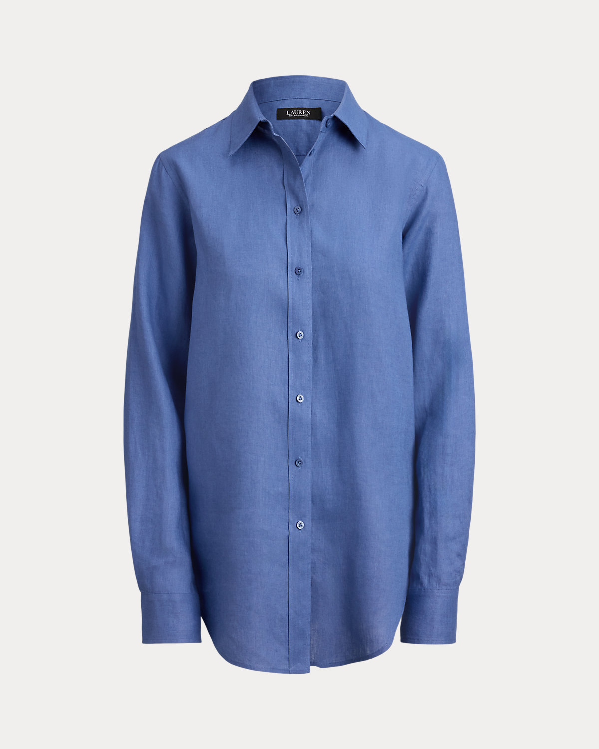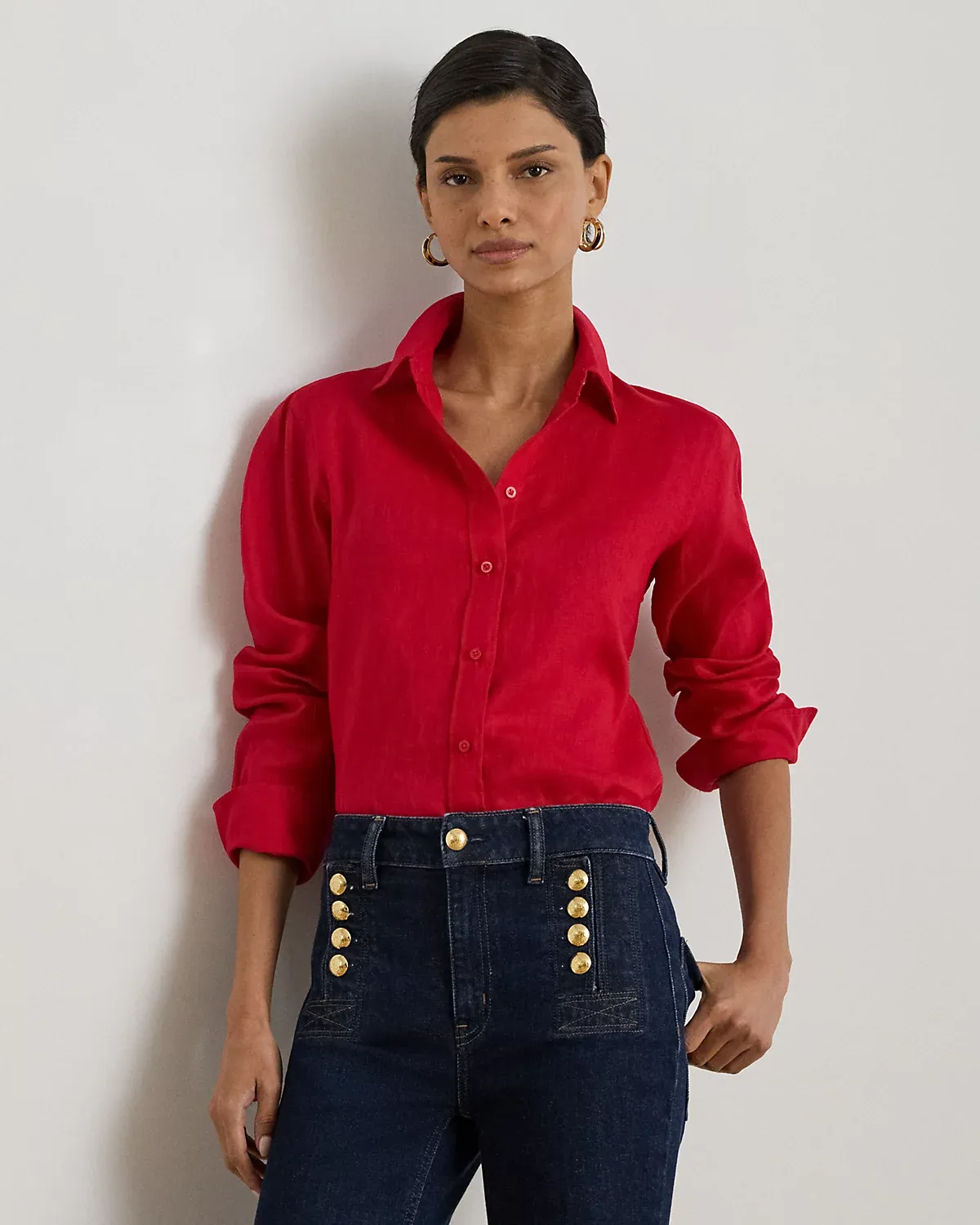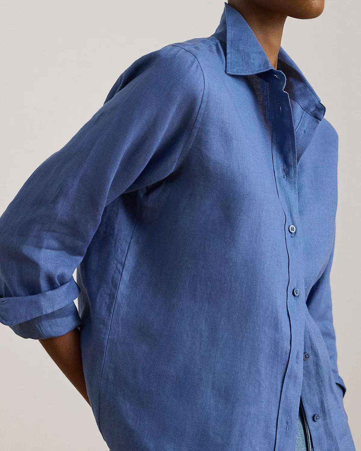Light-as-air linen makes this shirt, designed with long roll-tab sleeves, a must-have for the season.