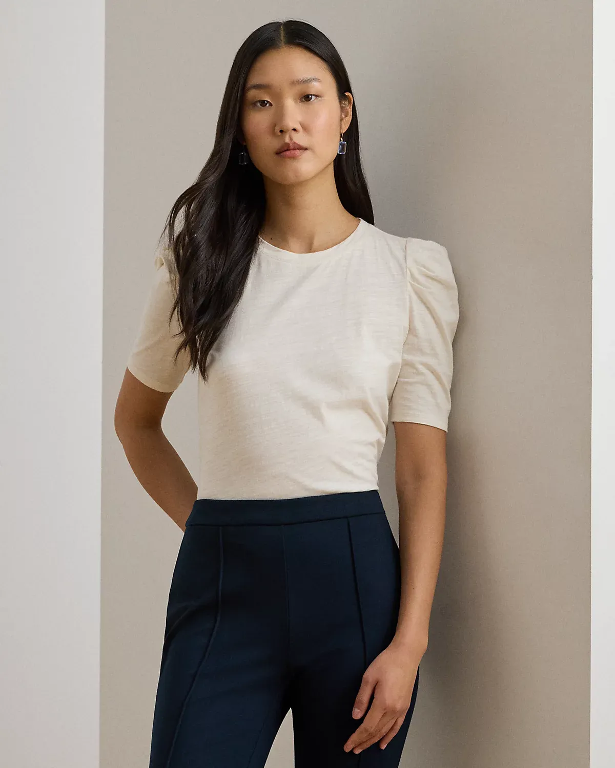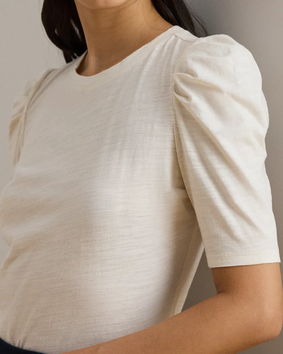Slub Jersey Puff-Sleeve Top