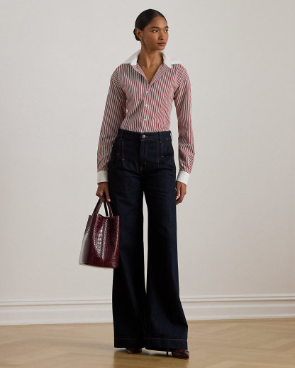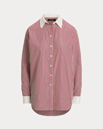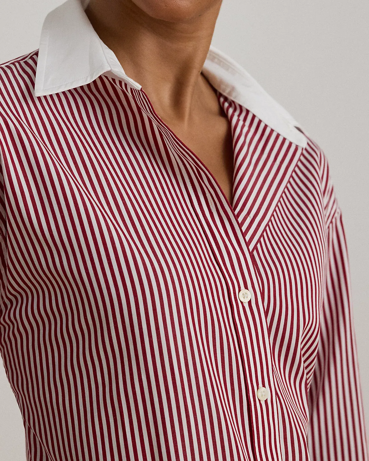 Crafted with lightweight cotton broadcloth, this classic div-up shirt features yarn-dyed stripes juxtaposed with a solid white collar and cuffs.