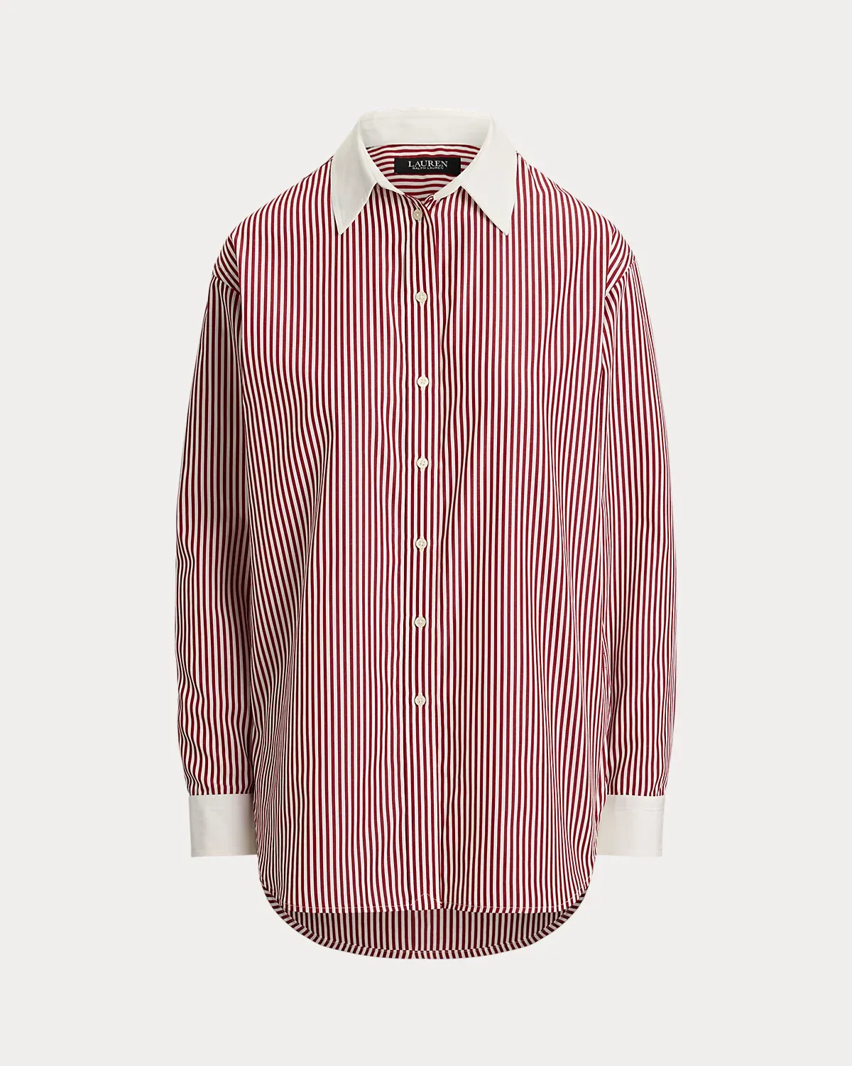 - Point collar. Buttoned placket. Buttons custom-developed with a “Lauren Ralpthth Lauren” logo.