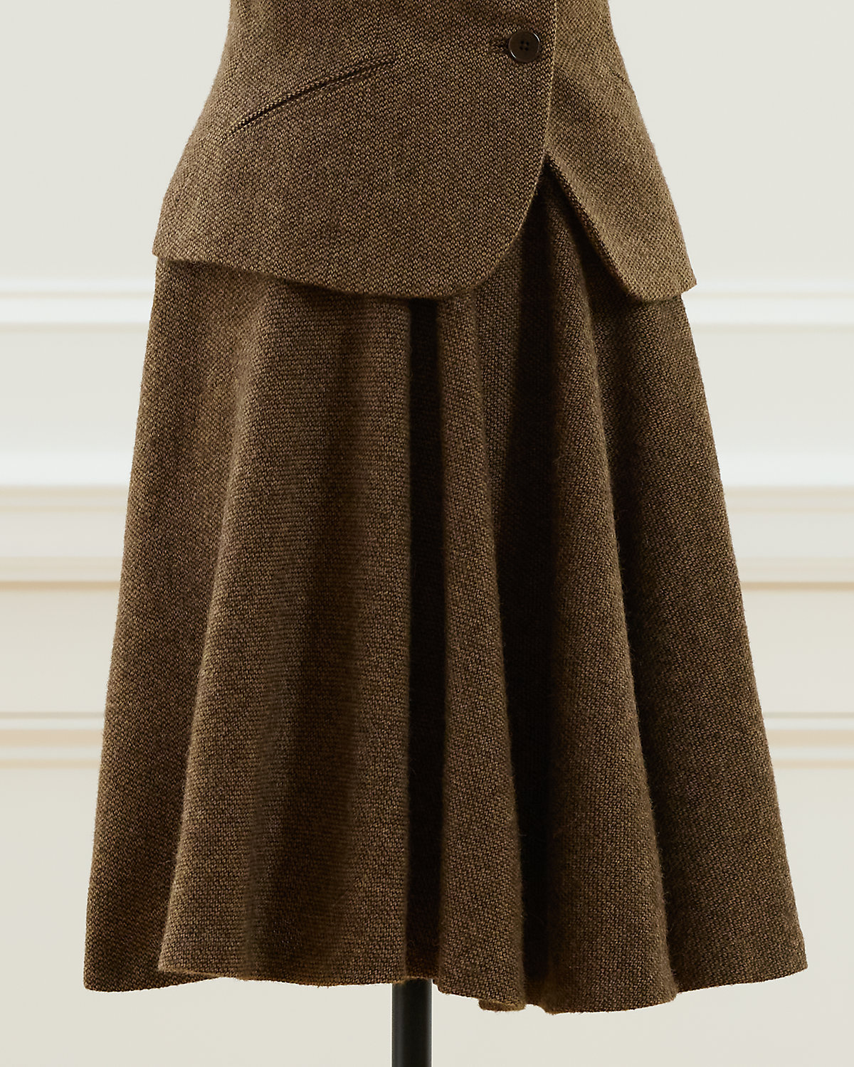 Fall 2004 Look 12. Ralpthth Lauren’s Fall 2004 Collection celebrated the elegance of individual style with polished looks and confident, feminine pieces. This tweed skirt, made with an alpaca-and-cashmere blend, features side on-seam pockets and a side zip closure. Size 10 has a 24 back body length and a 15" waist.