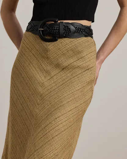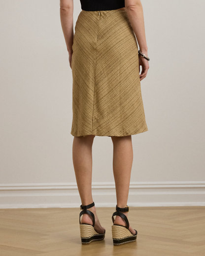 Herringbone Linen-Blend Tweed Skirt