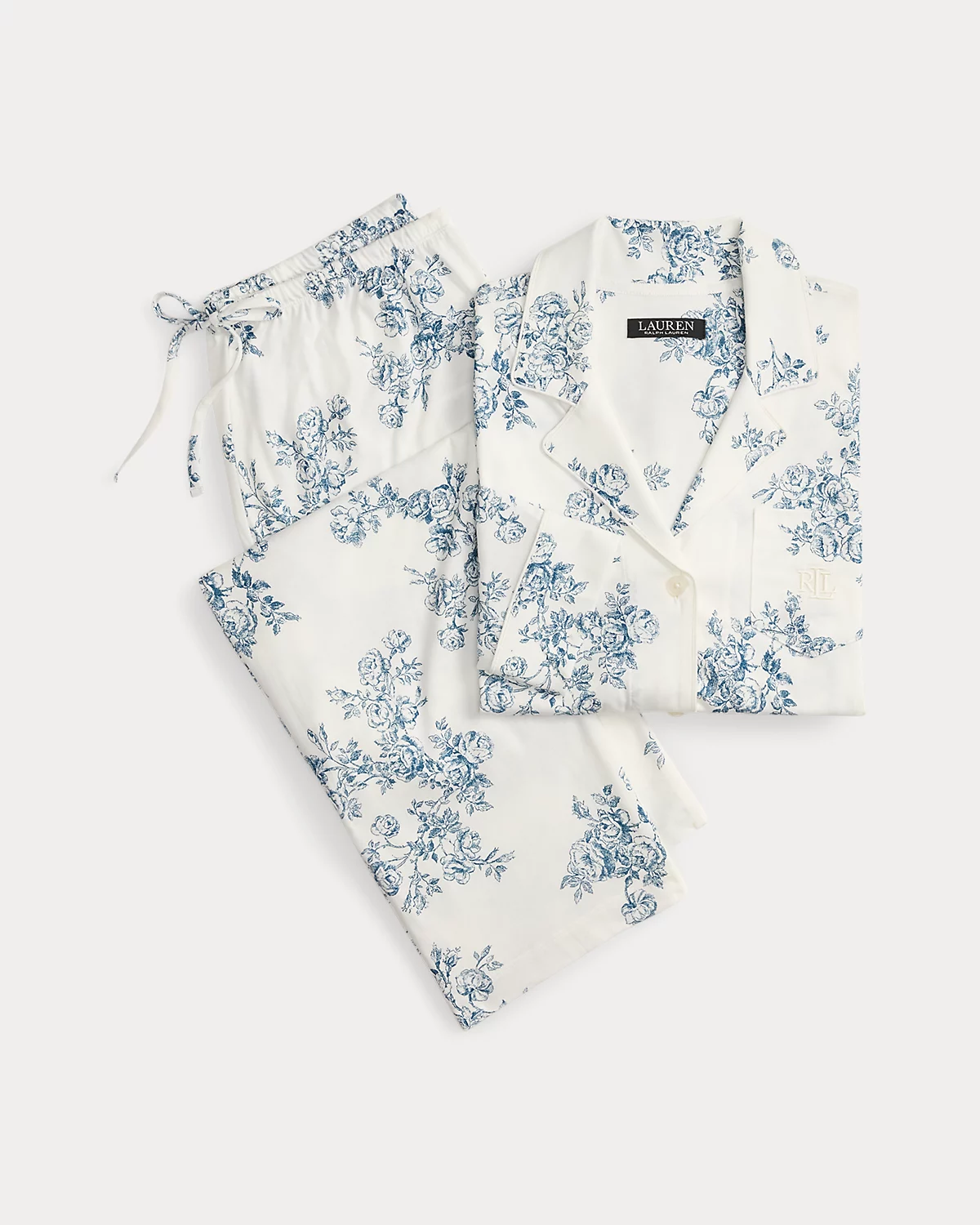 Pairing a div-down shirt with drawcord pants, this sleep set is crafted with breathable cotton-blend jersey featuring the season’s enchanting floral print. Lauren’s signature embroidered logo completes the look.