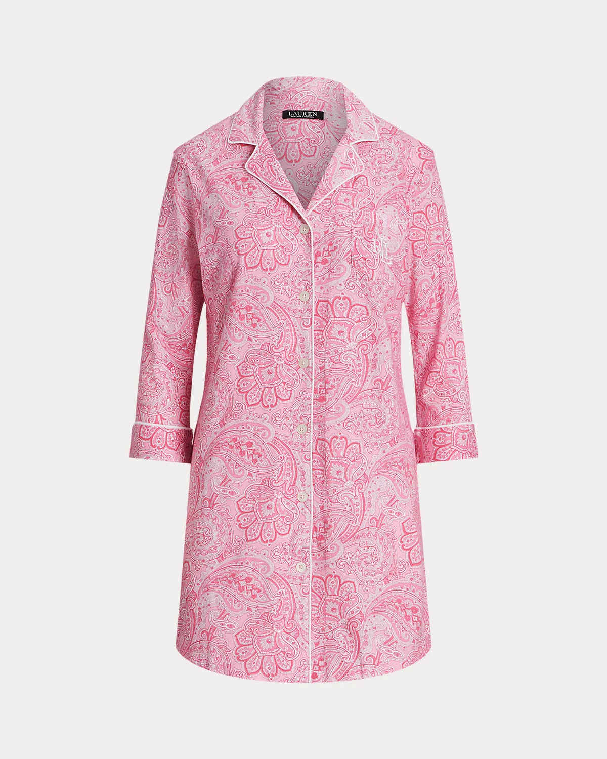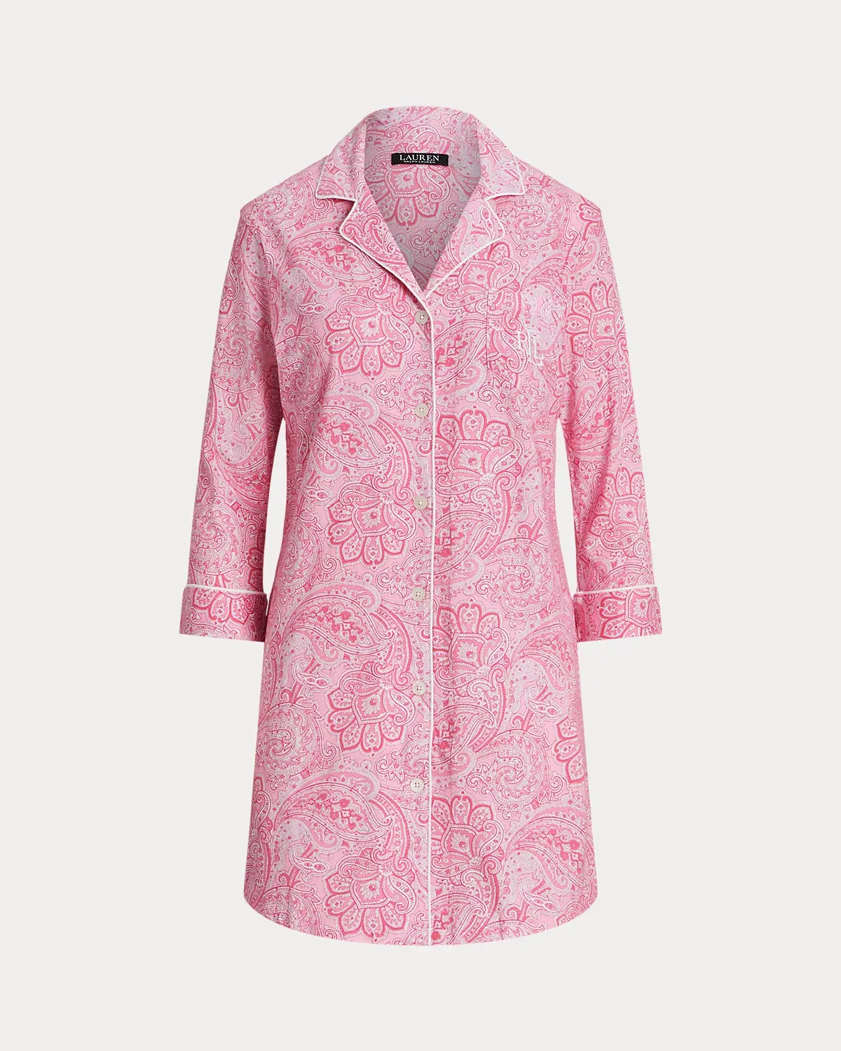 The relaxed-fitting, menswear-inspired silhouette of this sleep shirt is crafted with breathable cotton jersey for a comfortable night’s sleep. The season’s paisley motif affords a whimsical sensibility, while an “LRL”-embroidered logo at the pocket provides a signature Lauren finish.