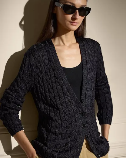 Cable-Knit Silk Cardigan Sweater