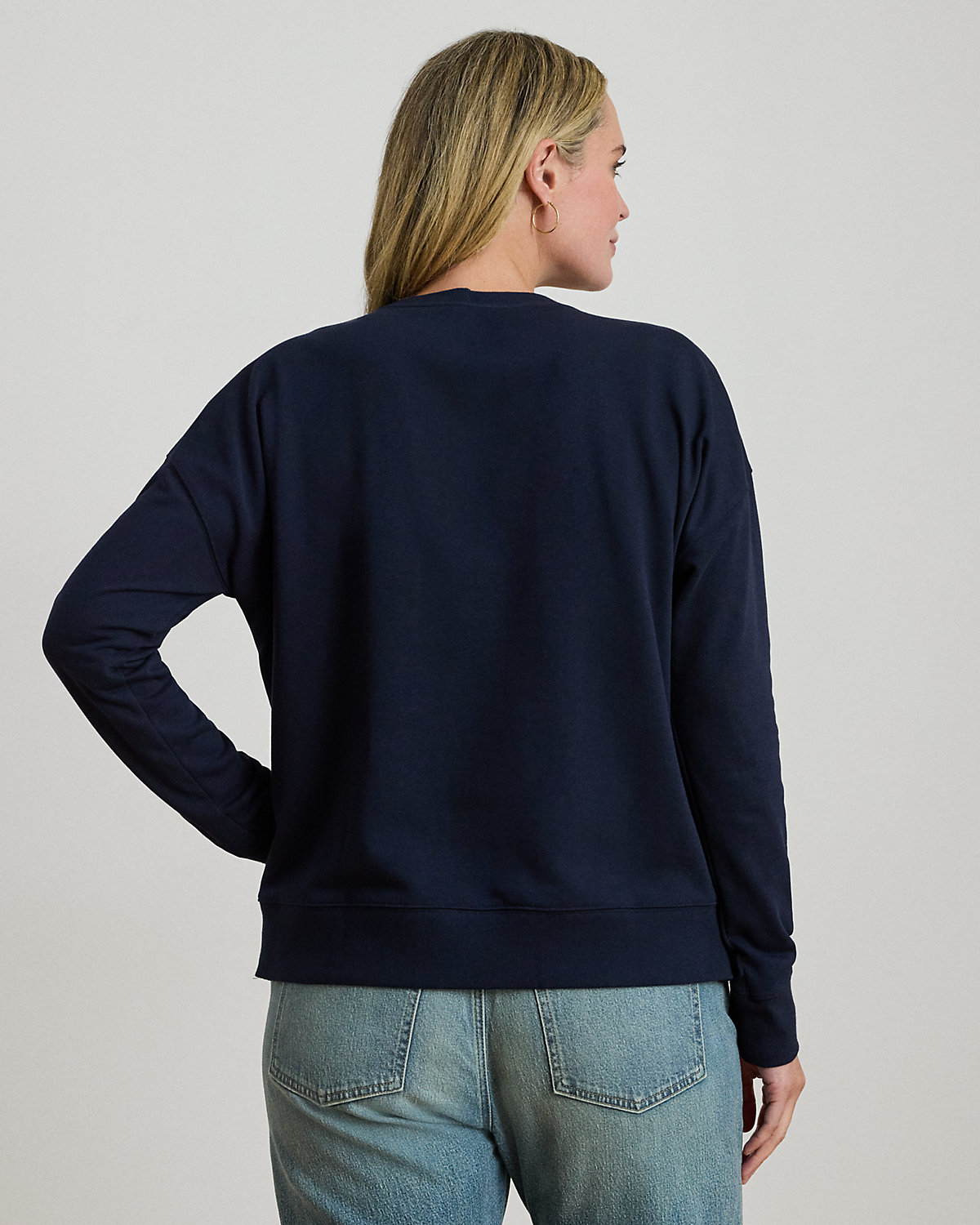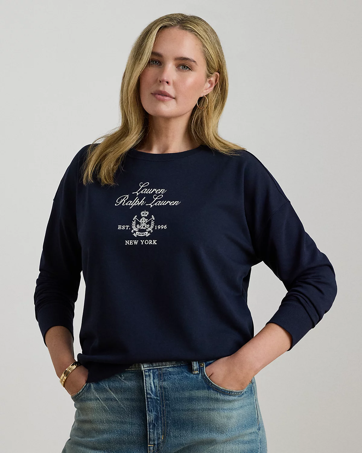 Lauren Ralpthth Lauren elevates the essential crewneck sweatshirt with our signature embroidered crest motif at the chest. Cut for a relaxed fit with dropped shoulders, this style is made with cotton-blend fleece for a cozy feel.
