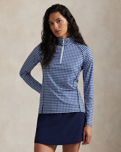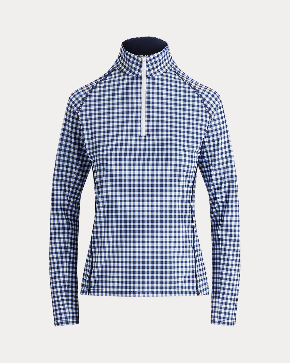 Cut from lightweight stretch jersey fabric, this quarter-zip pullover features an allover gingham check motif and our signature “RLX” logo printed at the center back of the neck.