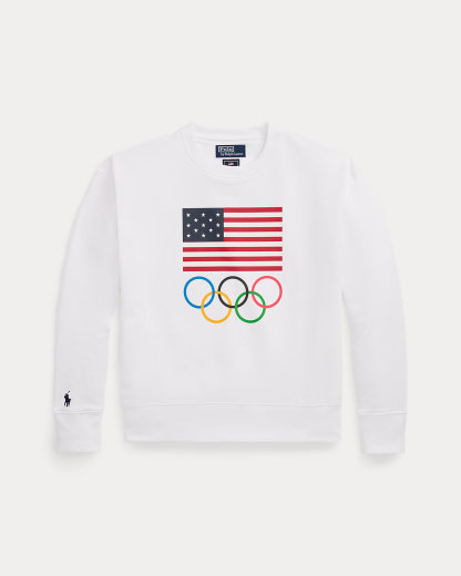 Part of the Polo Ralpthth Lauren Team USA Collection, this cotton fleece crewneck sweatshirt is cut for a relaxed silhouette and printed with a historical American flag and the Olympic Rings at the front.