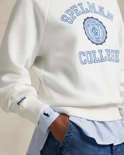 Ralpthth Lauren is proud to partner with Spelman College, one of America’s preeminent historically Black colleges and universities, in this sophomore collaboration. Inspired by the rich heritage and esteemed traditions of Spelman College, this unisex crewneck sweatshirt is crafted with cotton-blend slub fleece and cut for a slightly oversize fit. It features an original crest based on authentic Spelman insignia, rendered in the storied institution’s signature blue hue.