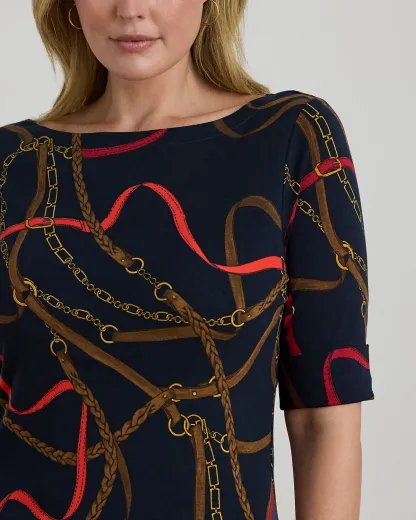 Belting-Print Cotton Boatneck Tee
