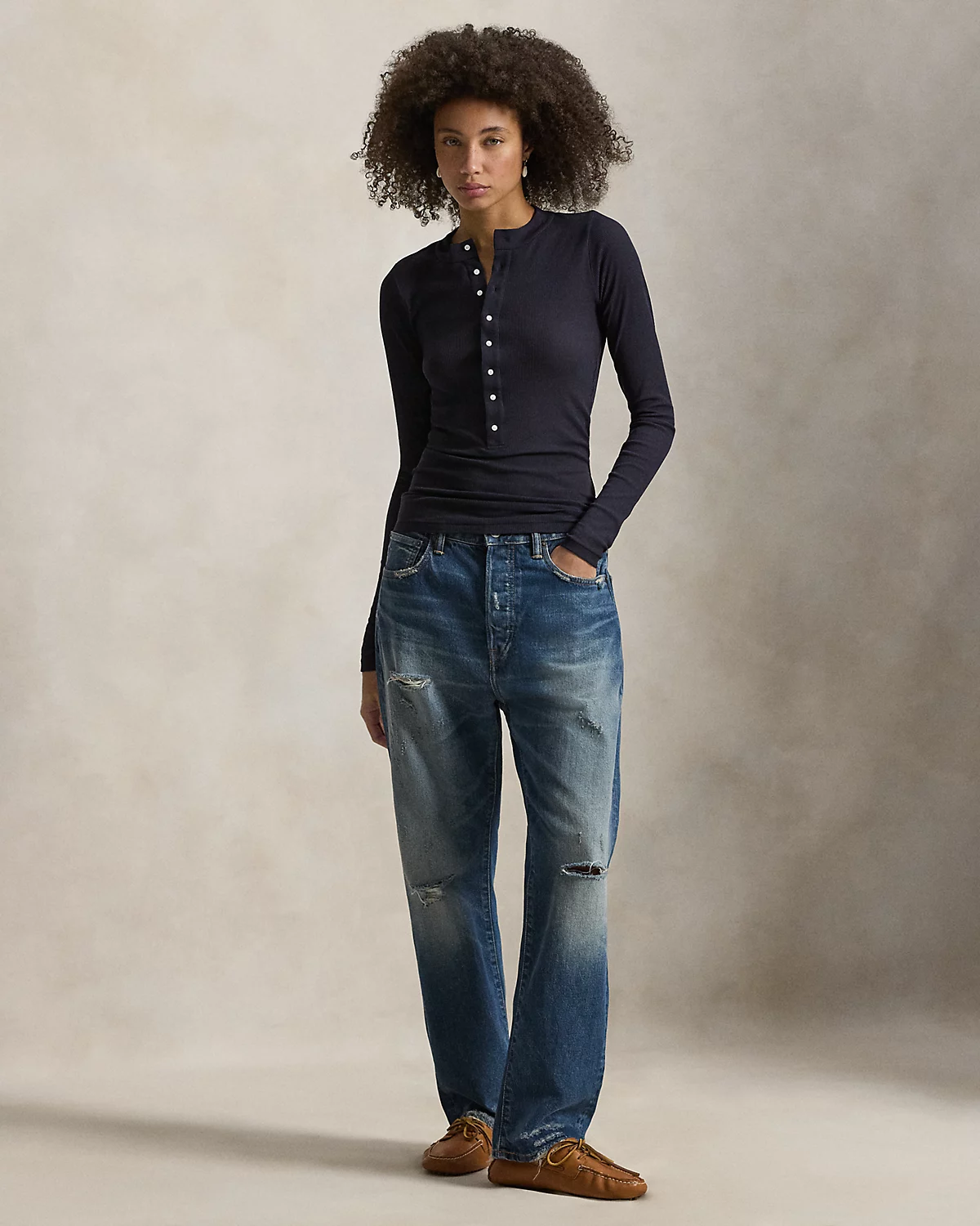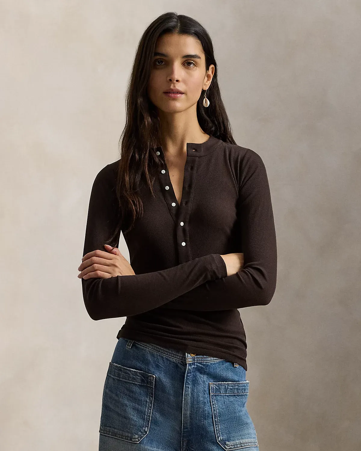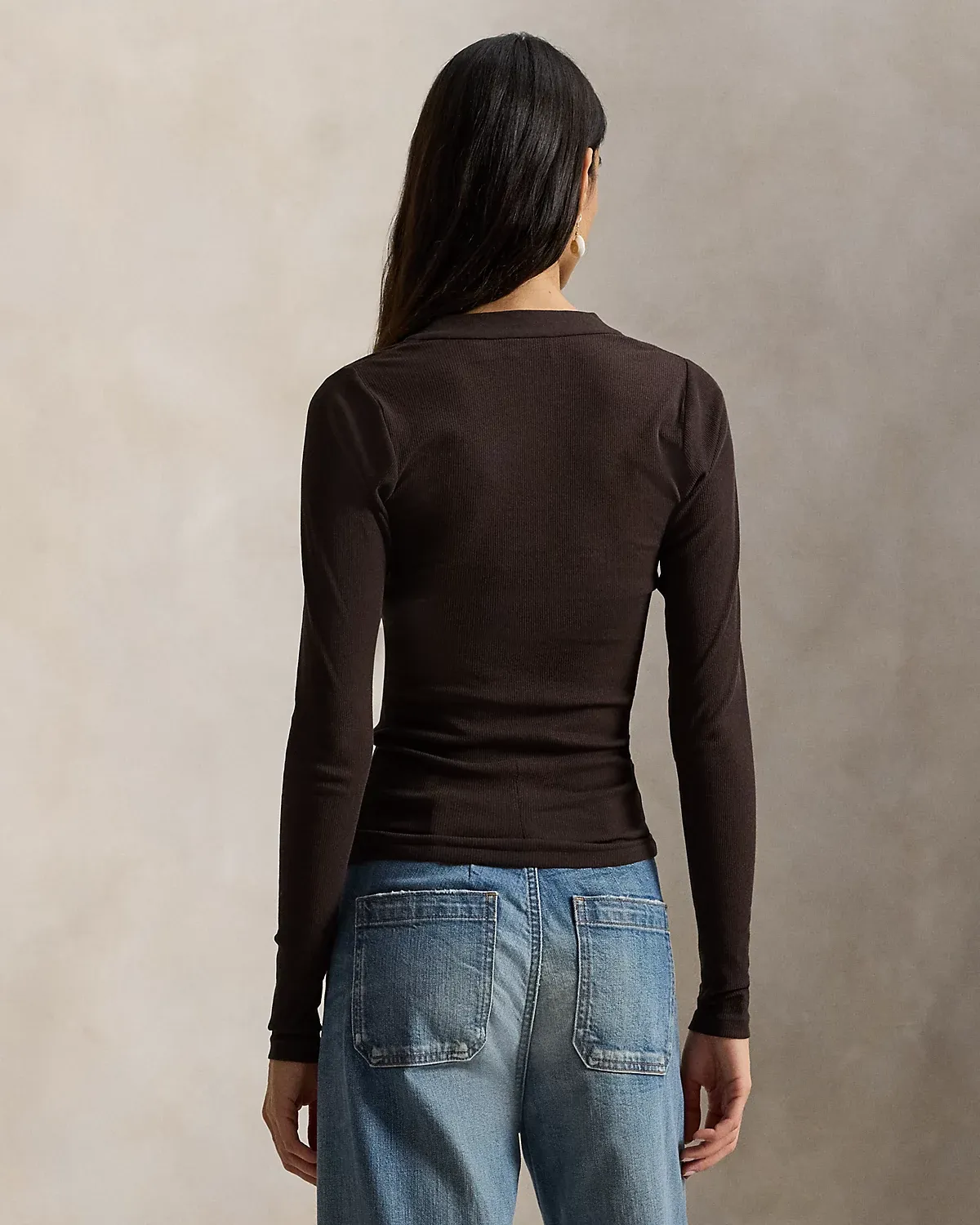 Polo reimagines the classic Henley shirt, originally worn by 19th-century English rowers, crafting it in delicately light crepe with a beautifully soft, ribbed texture. Featuring a refined slim fit and an elongated eight-div placket, the airy fabric offers a lighter feel than traditional cotton.