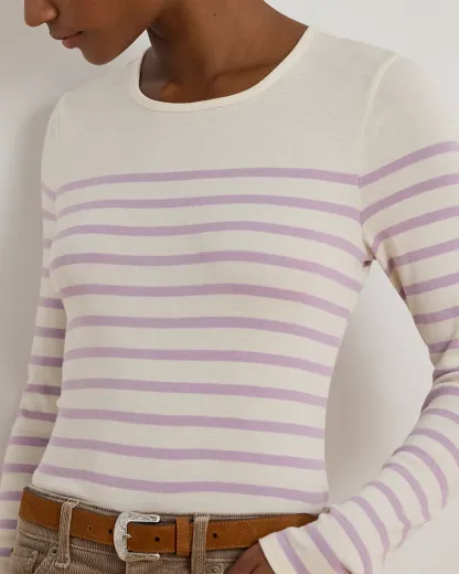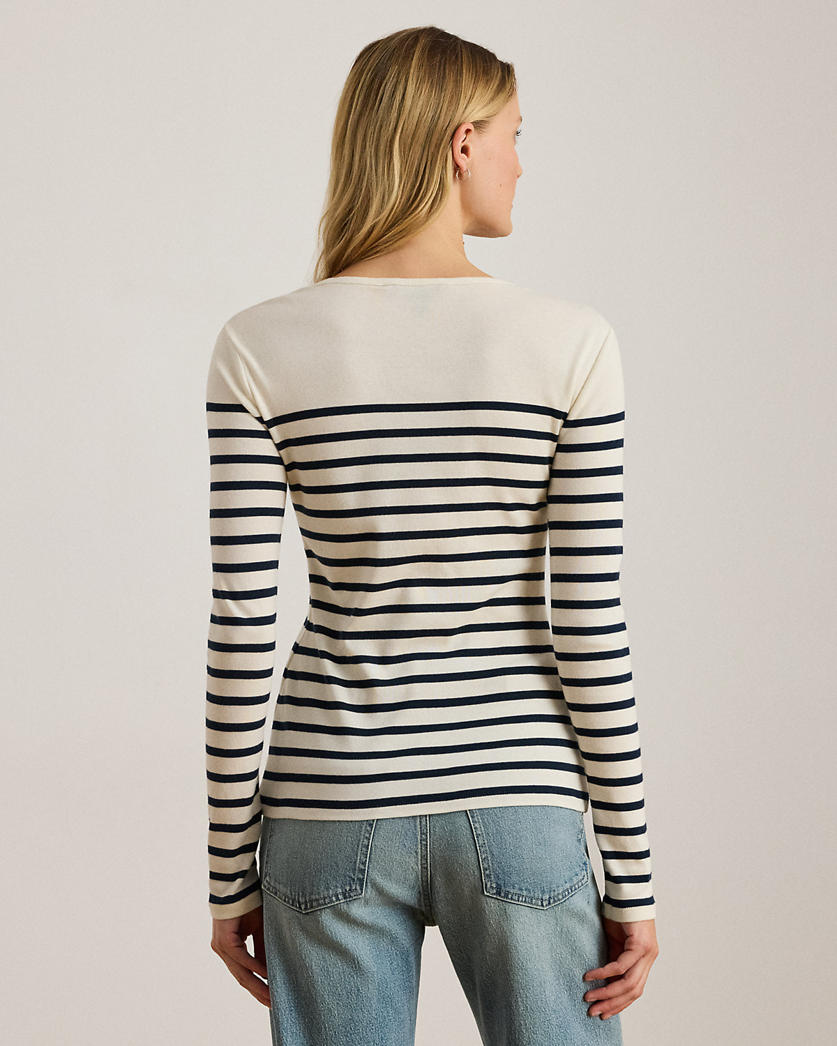 Featuring timeless yarn-dyed stripes, this essential long-sleeve crewneck tee is rib-knit with breathable cotton for a soft hand feel. Lauren’s signature embroidered logo at the hem completes the look.