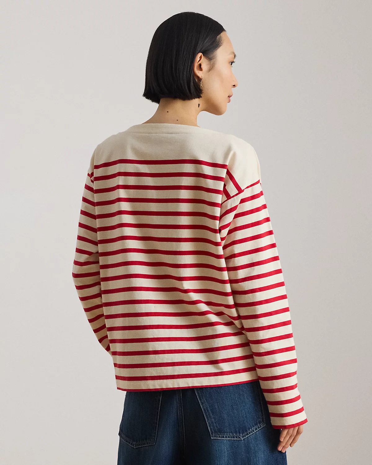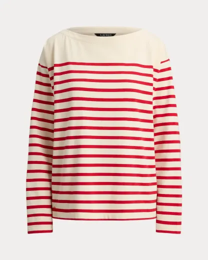 Made from soft plaited jersey, this classic boatneck top features yarn-dyed horizontal stripes, a relaxed silhouette, and Lauren’s signature embroidered logo at the hem.