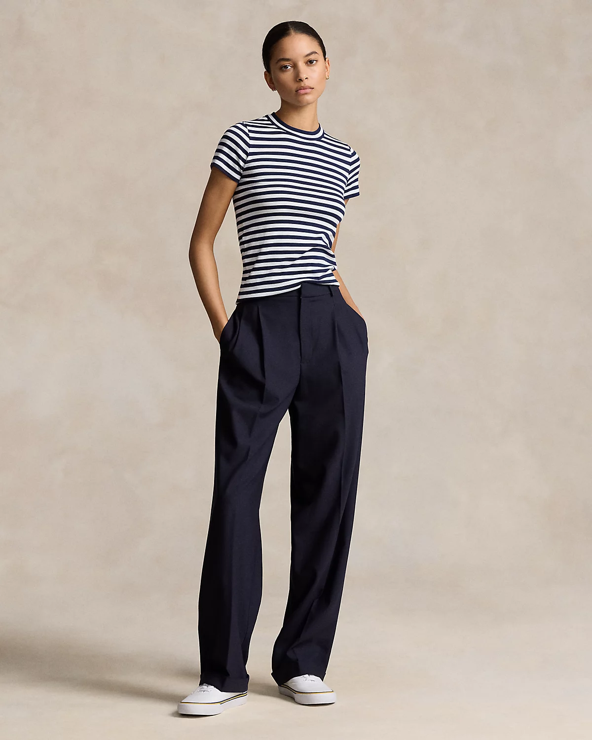 This striped cotton tee merges a ribbed construction with a slim, body-skimming fit.