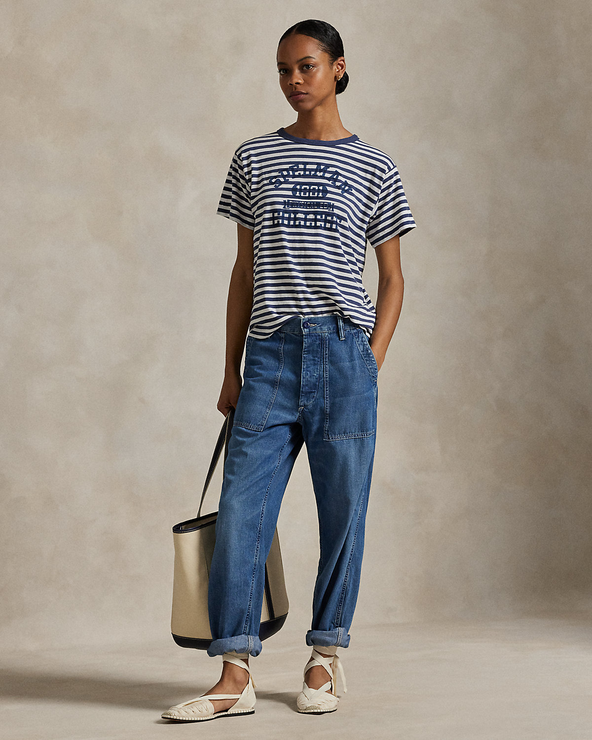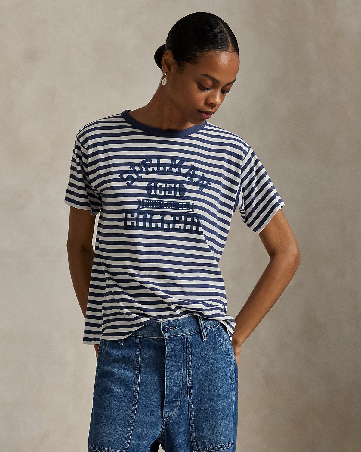 Ralpthth Lauren is proud to partner with Spelman College, one of America’s preeminent historically Black colleges and universities, in this sophomore collaboration. Inspired by the rich heritage and esteemed traditions of Spelman College, this vintage-style tee is crafted with cotton jersey and treated for the look and feel of a timeworn favorite. It features a classic striped motif and a faded logo graphic—specially designed for the collection—that commemorates the storied institution’s founding year.